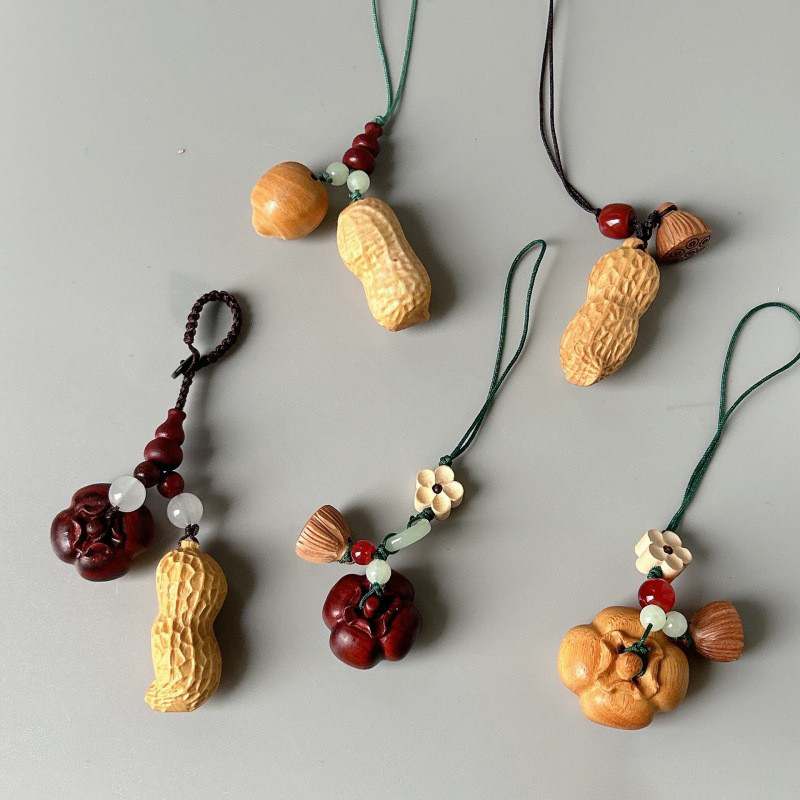 紫檀柿子花生車キーホルダーDIYペンダント、クリエイティブで個性的な装飾品