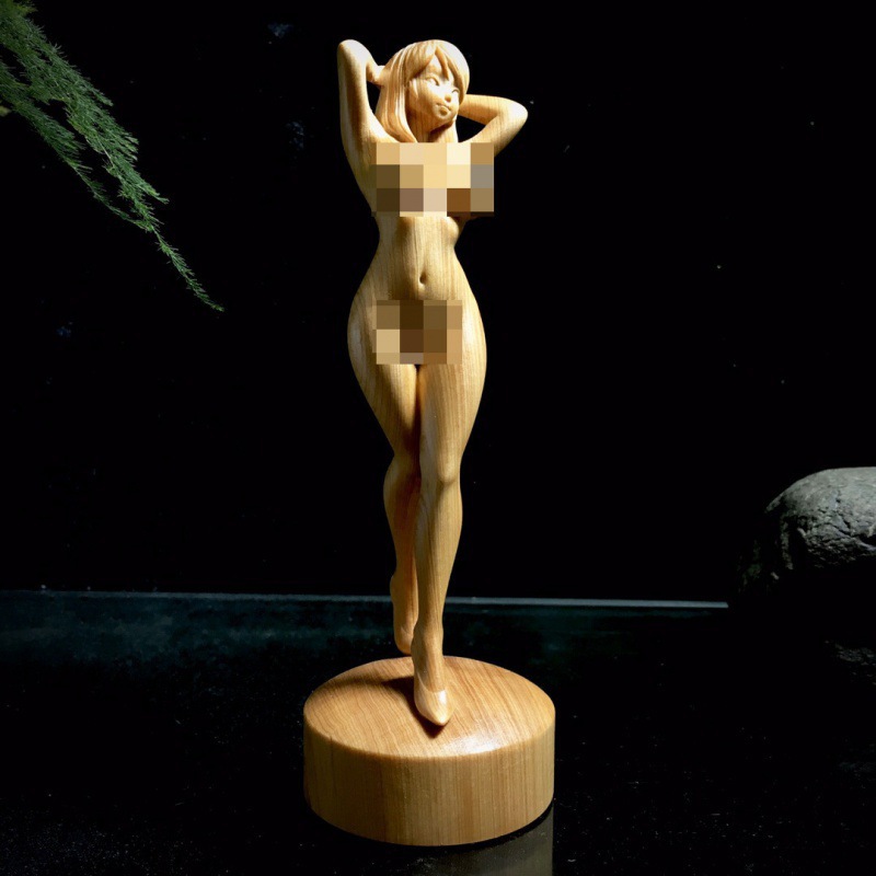 崖柏の木彫りハイヒールの女性の置物の実木の彫刻の模様の年の家庭の事務装飾の工芸品の贈り物