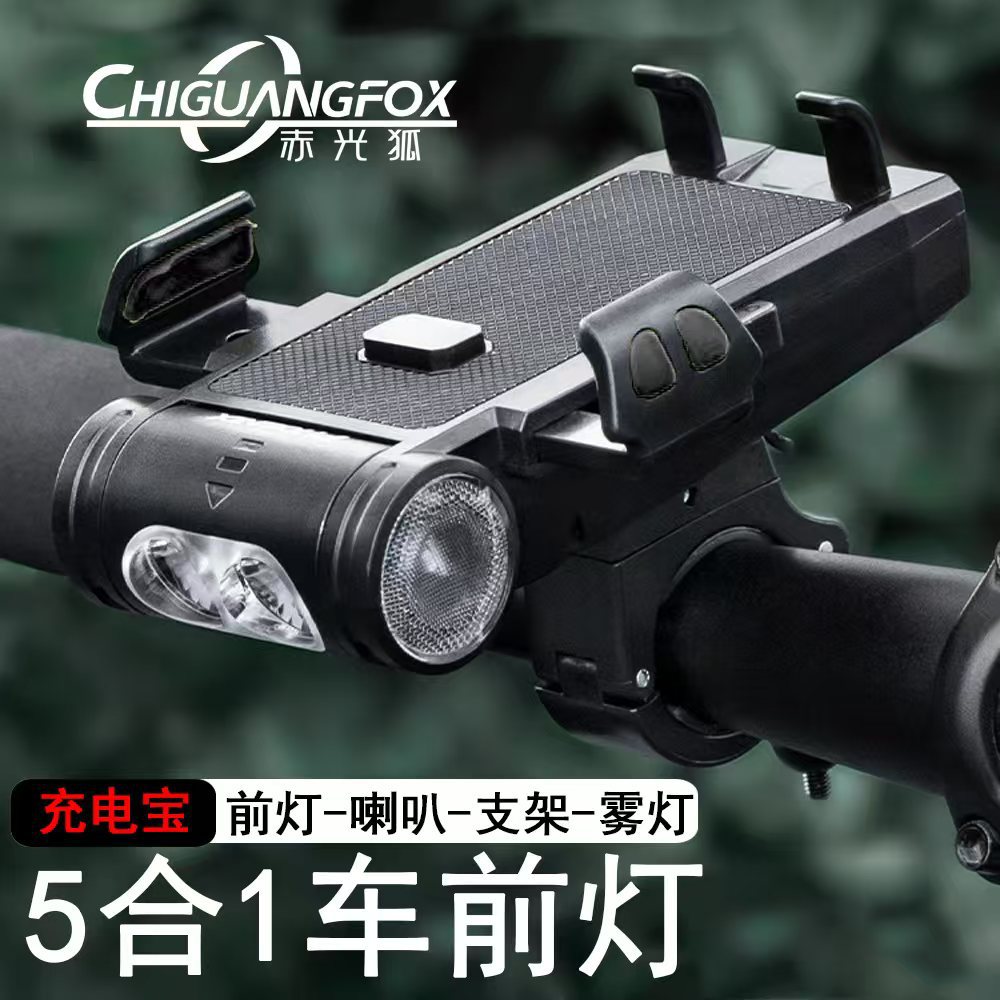 一体型五合一自転車ヘッドライトハイライト二重ランプヘッドフォグランプ付携帯電話スタンド高音ラッパ夜行灯