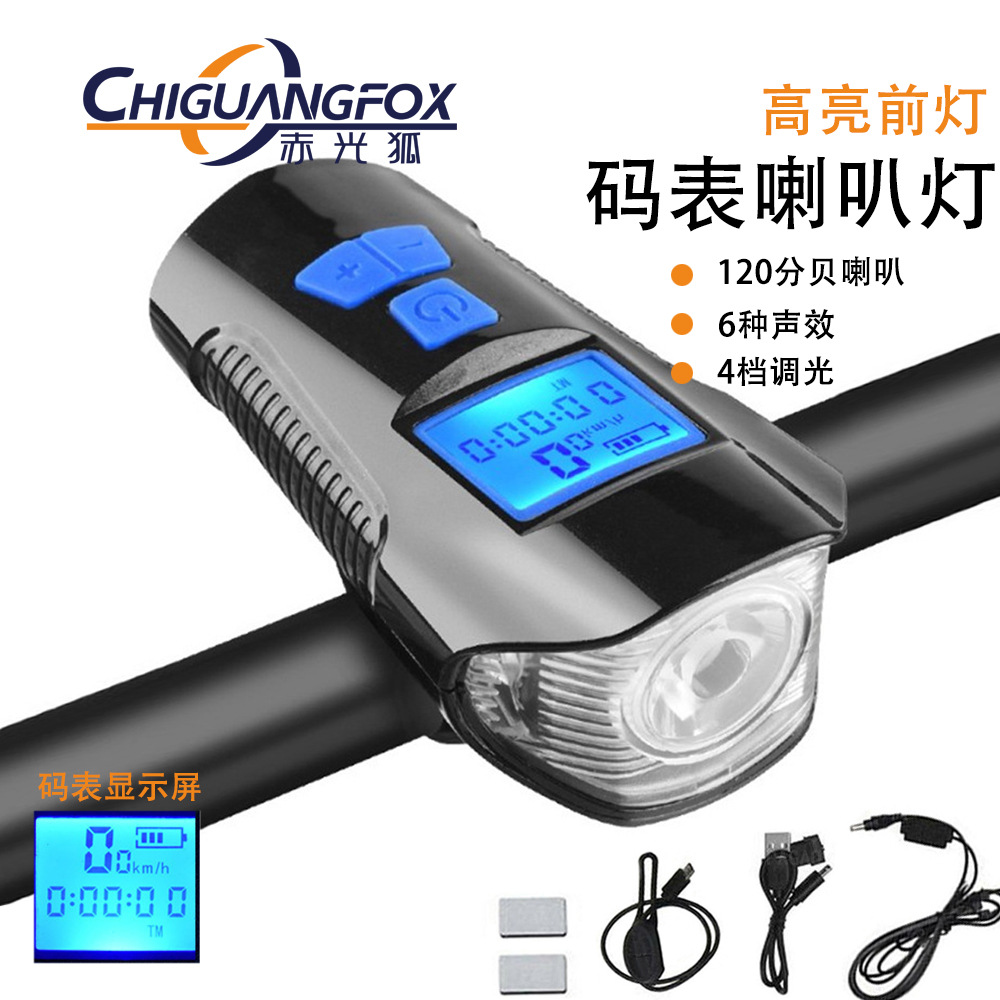 クロスボーダー自転車ホーンコンピューターヘッドライトUSB充電マウンテンバイクスリーインワン充電ディスプレイ自転車ナイトライディングライト