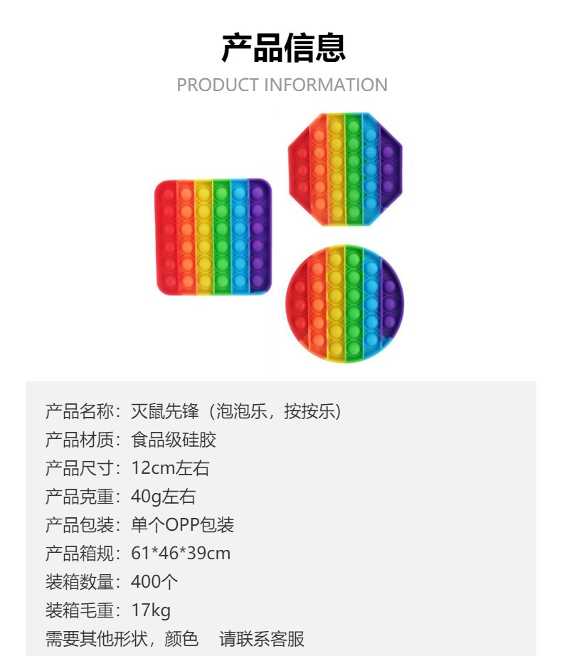 元のメーカーの虹は楽のシリカゲルの手環の小さいサイズを押してネズミの先鋒の卸売りの益智を押してシリカゲルの泡を解凍します。