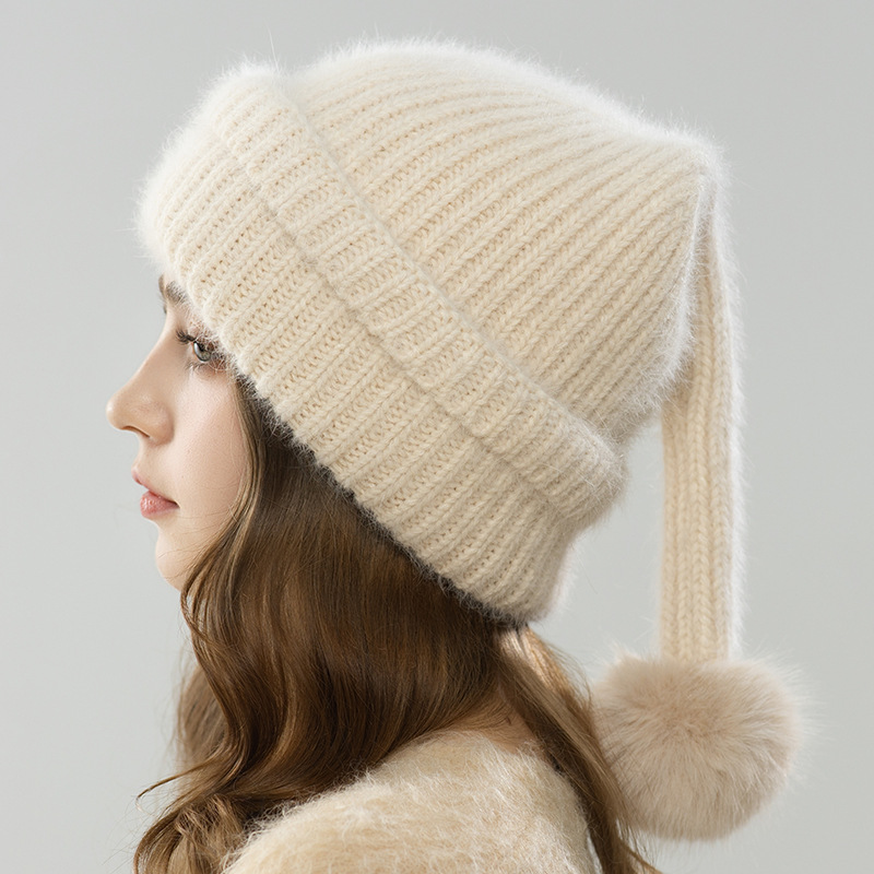 秋冬兔毛针织连帽毛球保暖帽柔软舒适时尚日常出街帽女生帽子批发