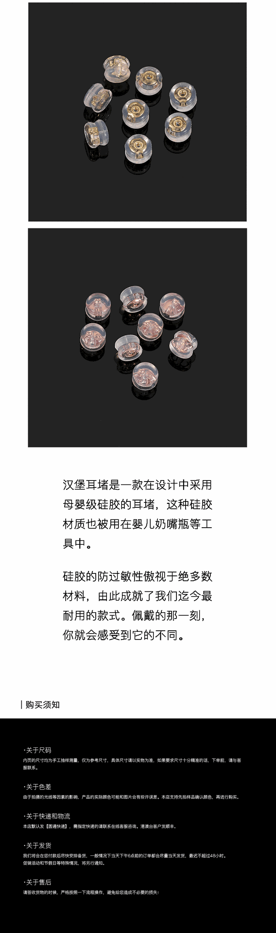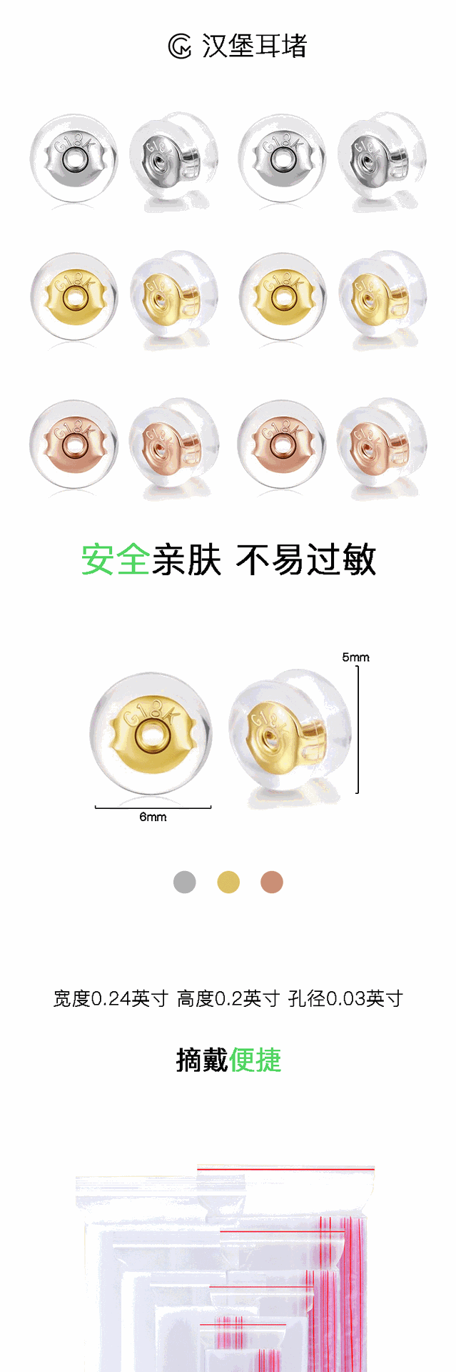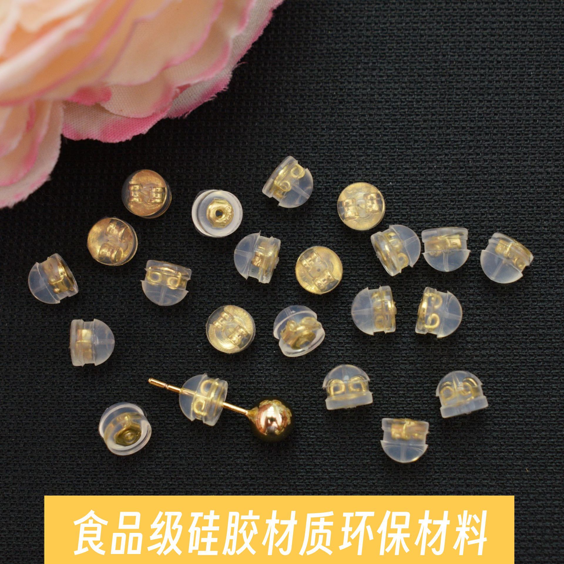 保色18k包金シリコンハンバーグ耳栓透明環境保護耳栓diy耳飾り手作り材料耳帽子卸売り