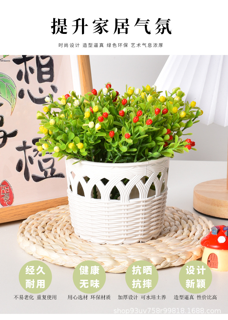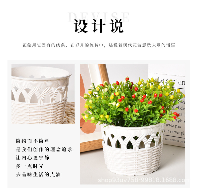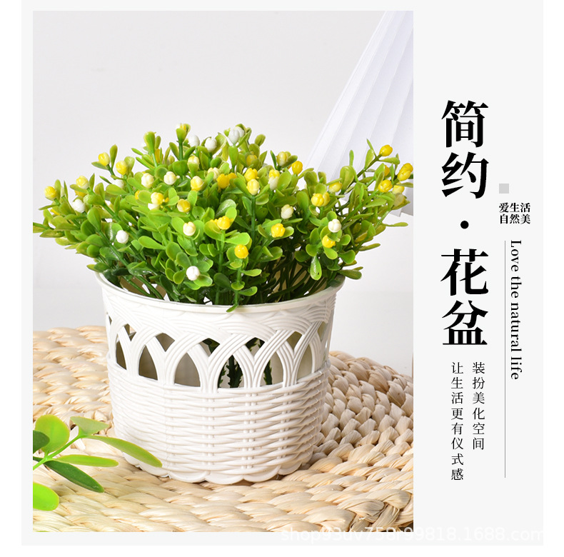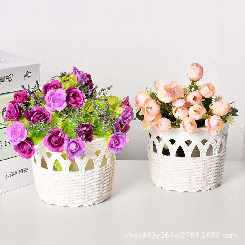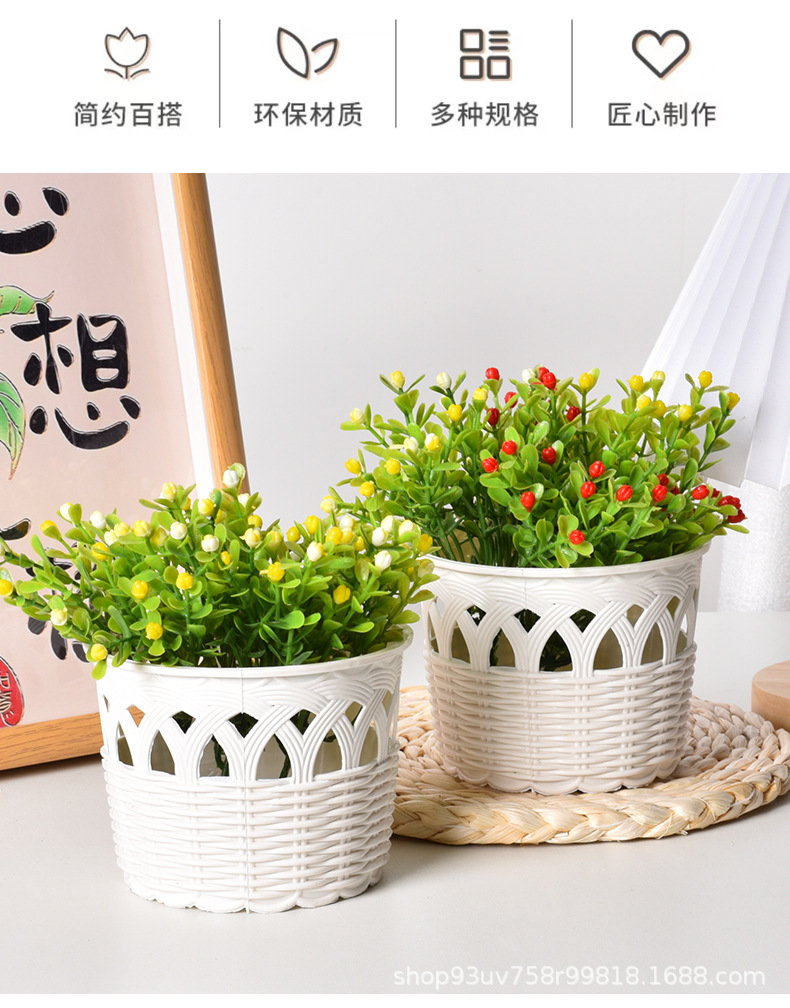 北欧花盆塑料跨境浪漫田园风ins仿藤编织花筐家居花艺装饰收纳篮