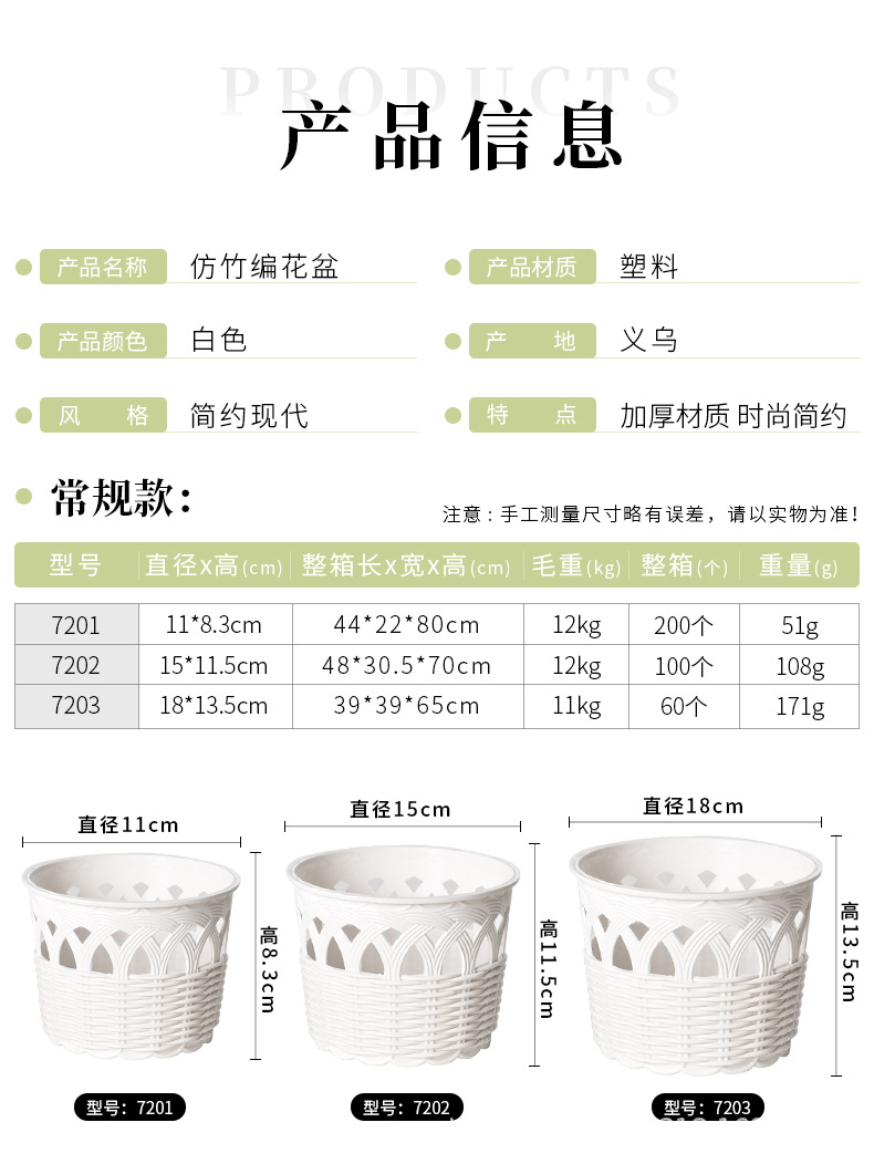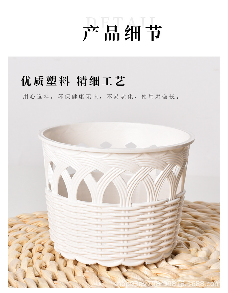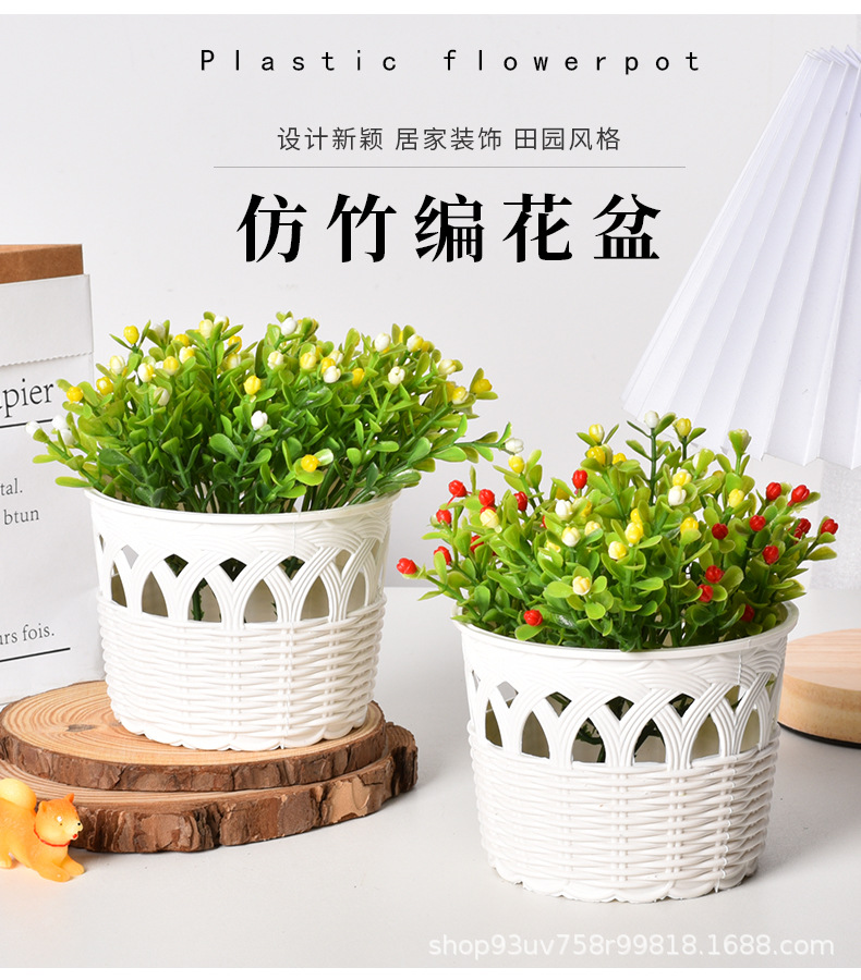 塑料花盆多肉种植盆绿植盆栽简约创意仿竹编加厚耐用家居装饰花盆