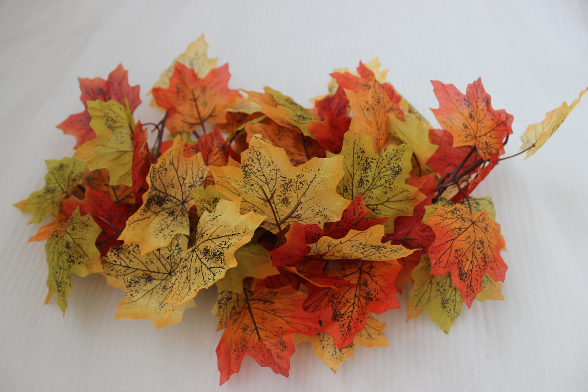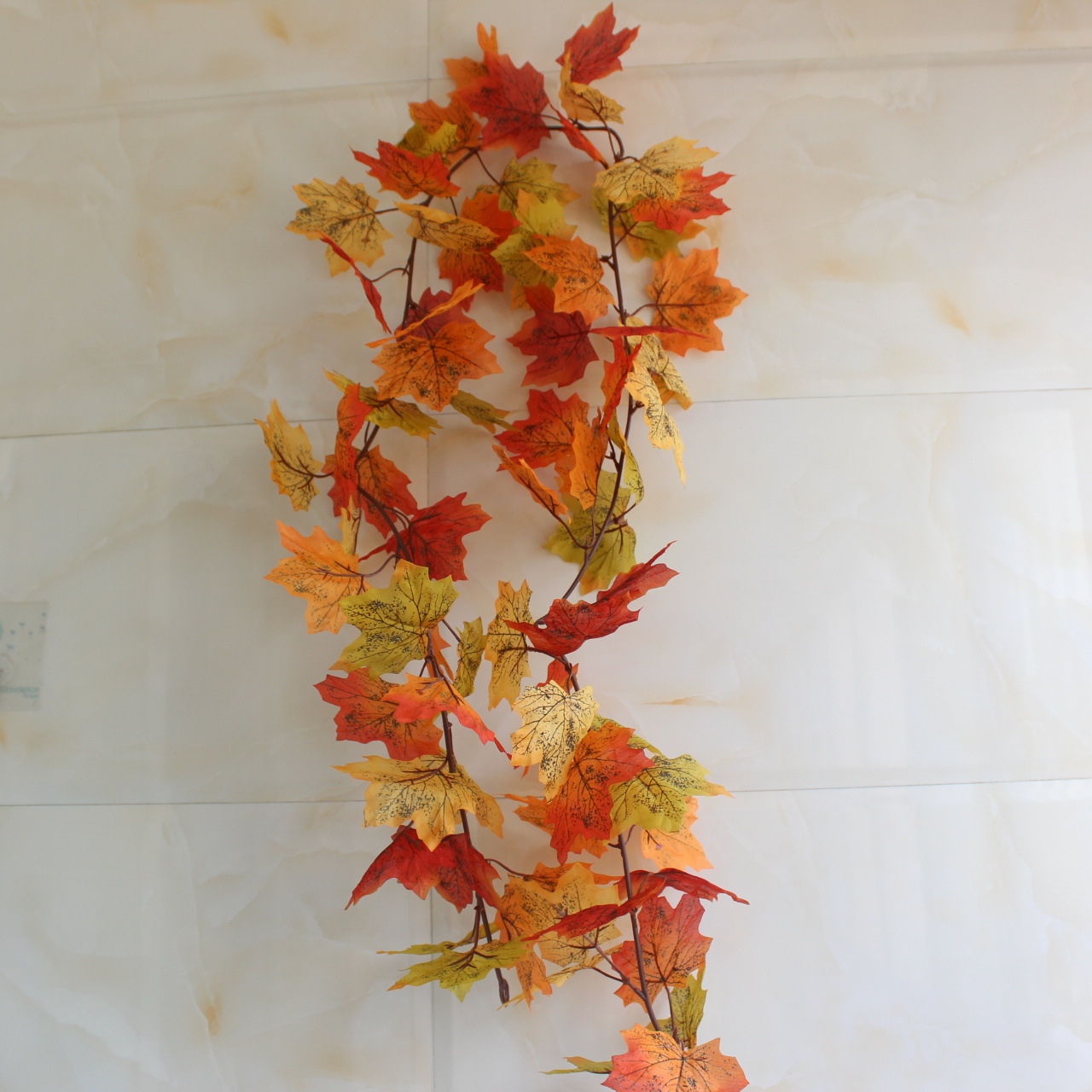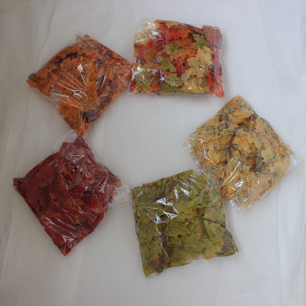 仿真枫叶 彩色枫叶 混色混插圣诞枫叶 万圣节装饰会场庆典缠绕叶藤