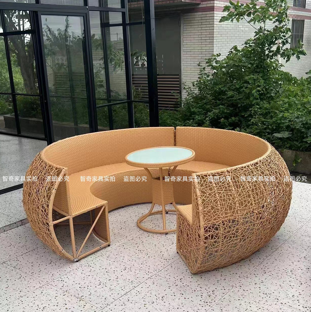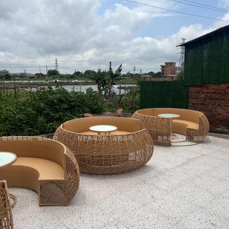 屋外チーク籐椅子ソファ中庭B&Bガーデンバルコニーレジャー籐防水編組ロープ組み合わせ屋外家具