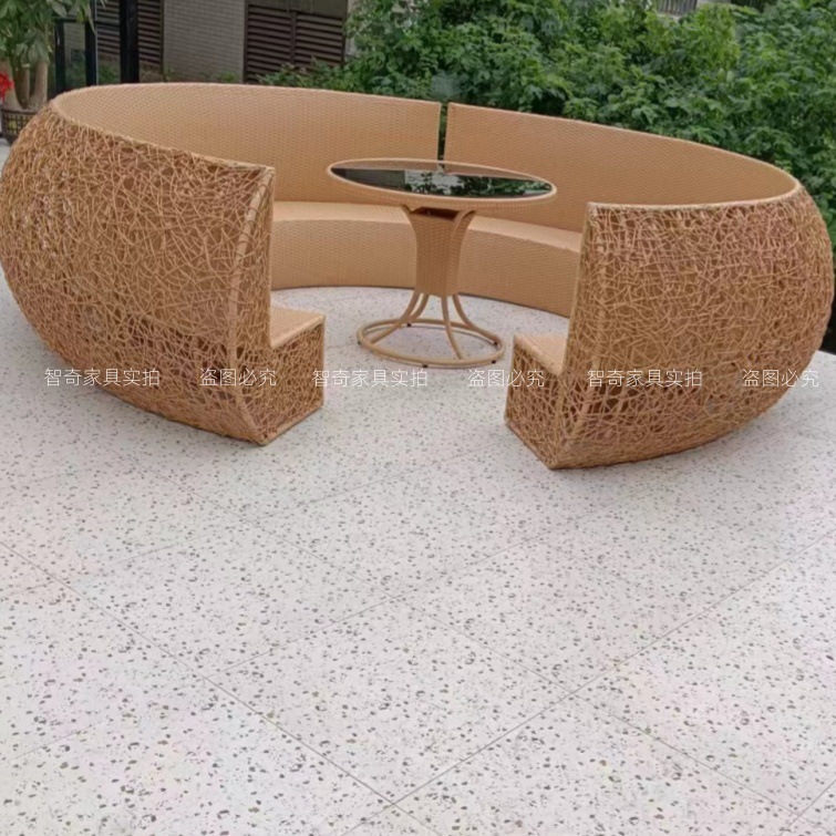 ホテルやB&B向けの屋外ロープ編みハイエンドソファコンビネーション、防水性と日焼け防止のヴィラ、屋外編み籐中庭テラスコンビネーション