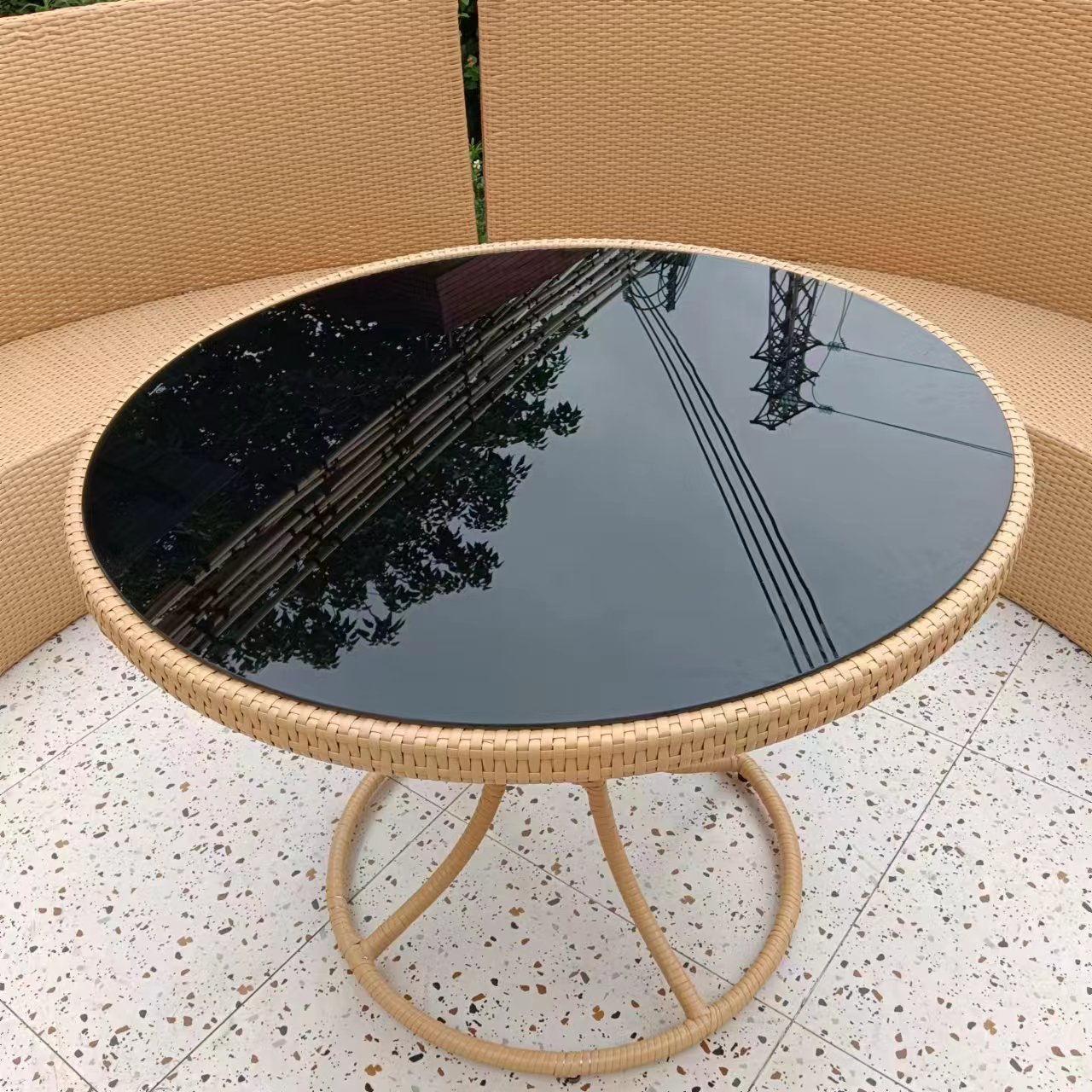 屋外籐テーブルと椅子防水と日焼け止めバルコニーテーブルと椅子ヴィラ中庭屋外オープンエアガーデンレジャーテーブルと椅子の組み合わせ