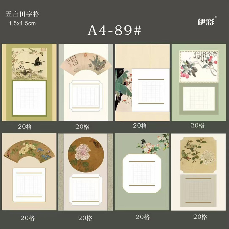 A 4硬筆書道作品紙七言絶句28格国風唐詩学生筆記練習紙1.5田字格