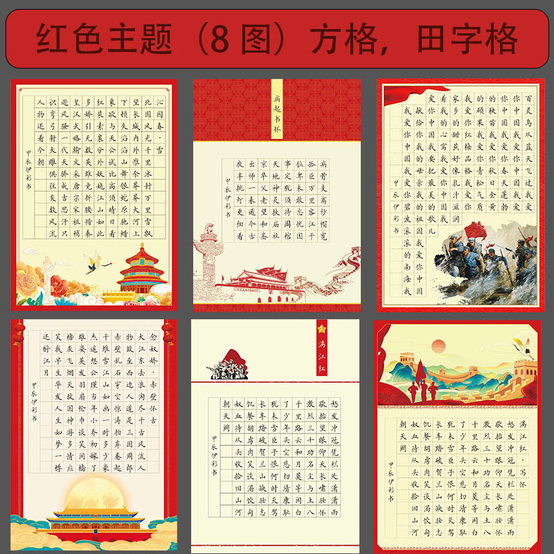 A4红色主题大方格田字格混加厚硬笔书法作品展示纸学生书写比赛纸