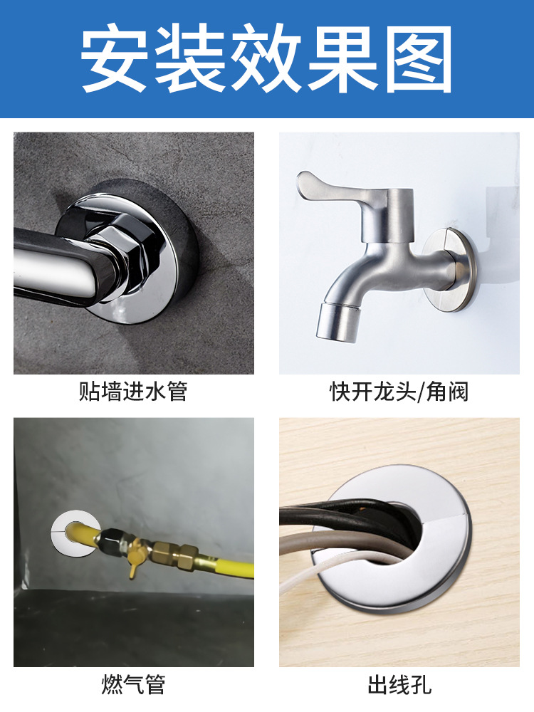 ステンレス装飾カバー角弁蛇口ガス給湯器エアコン穴配管マスク自己接着分離式