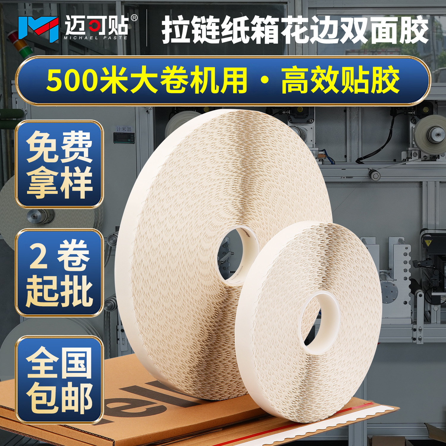 メーカー卸売りホットメルト紙機用両面テープ500メートル大巻き両面テープ封筒事務用両面テープ