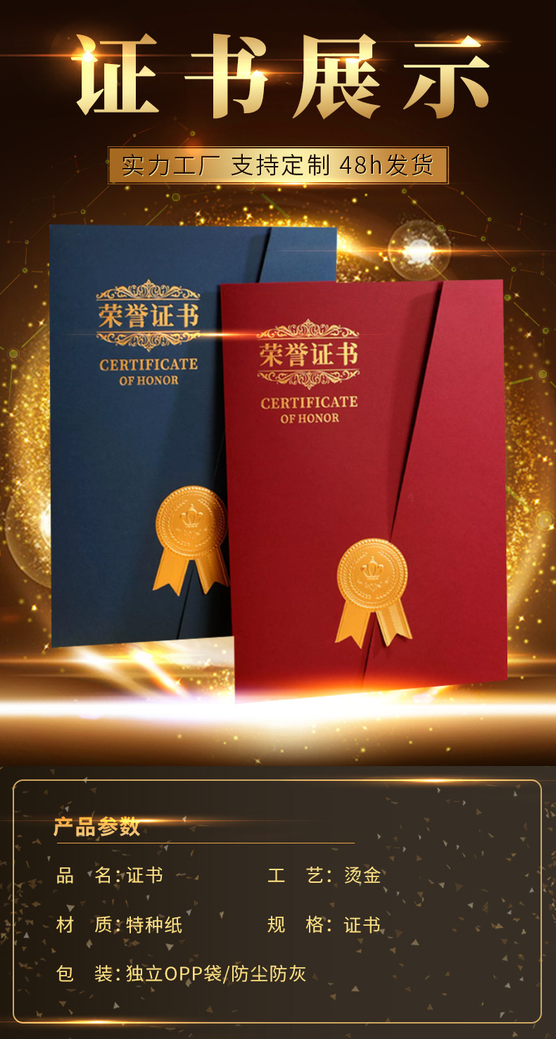 A4三つ折りカスタム栄誉証明書カスタム珠光クラックパーティ表彰四半期販売冠試合受賞授賞ww
