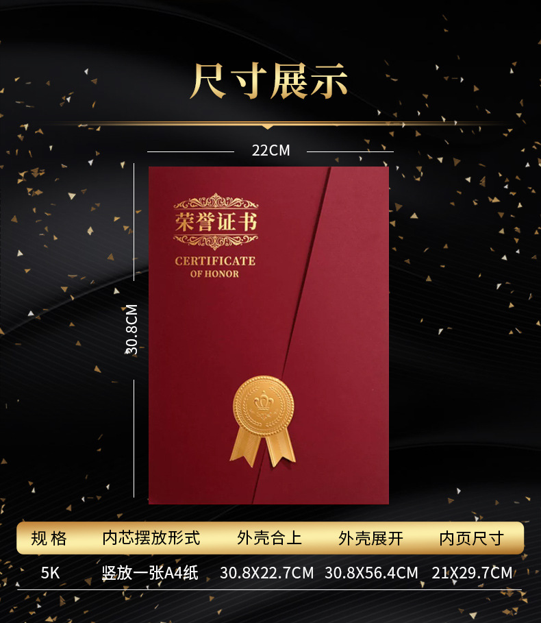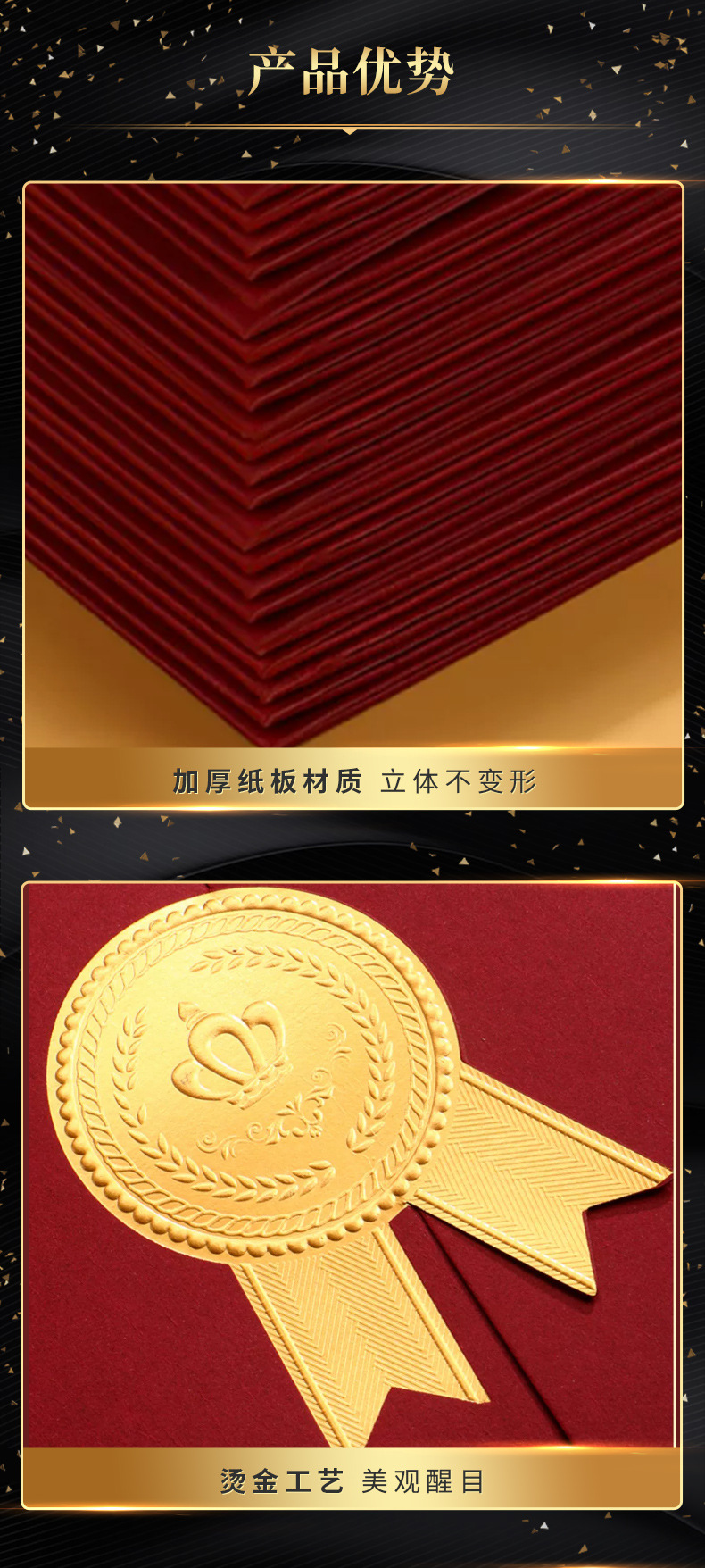栄誉証明書外殻国潮祥雲海波紋立体箔押し結納書訓練修了証明書授権書bgn