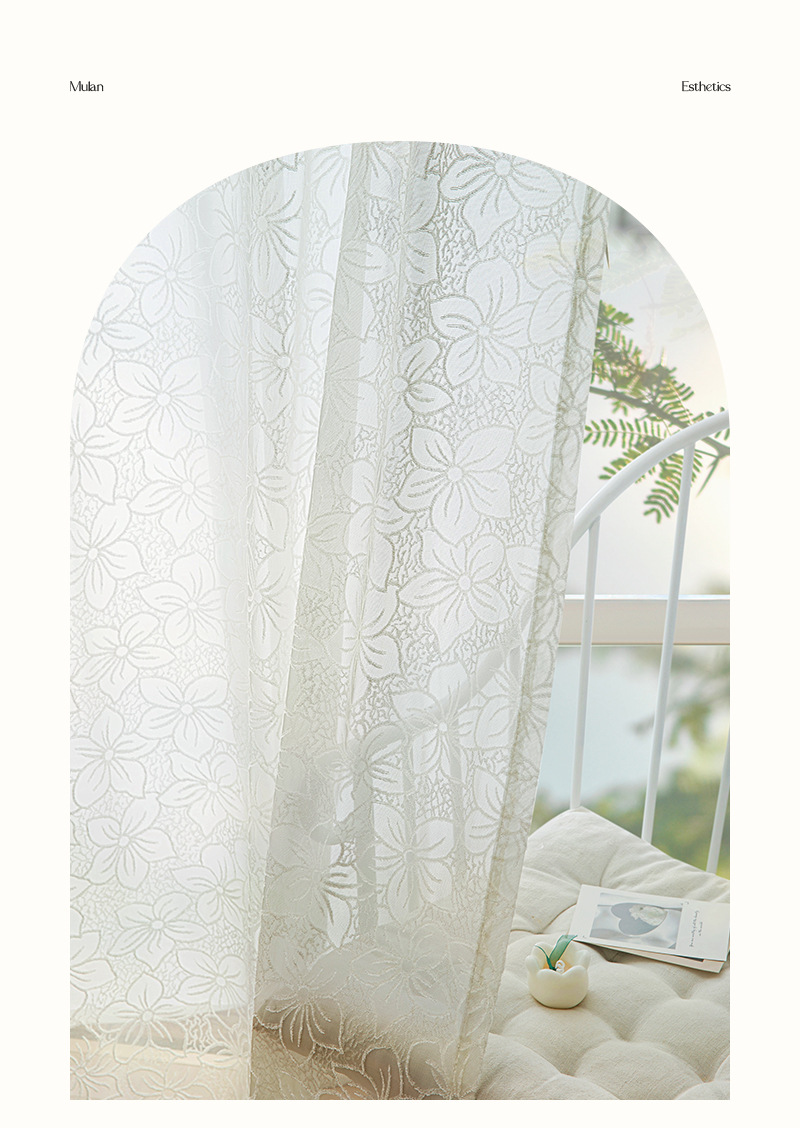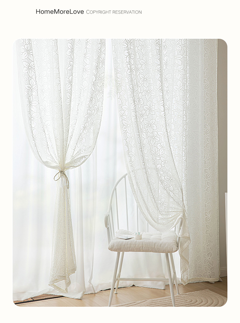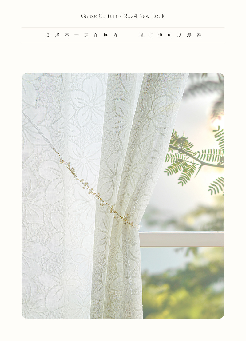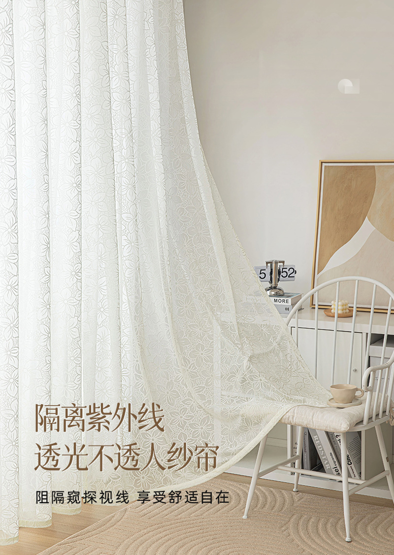 跨境樱花现代简约窗纱窗帘提花镂空透明花朵窗帘亚马逊厂家批发