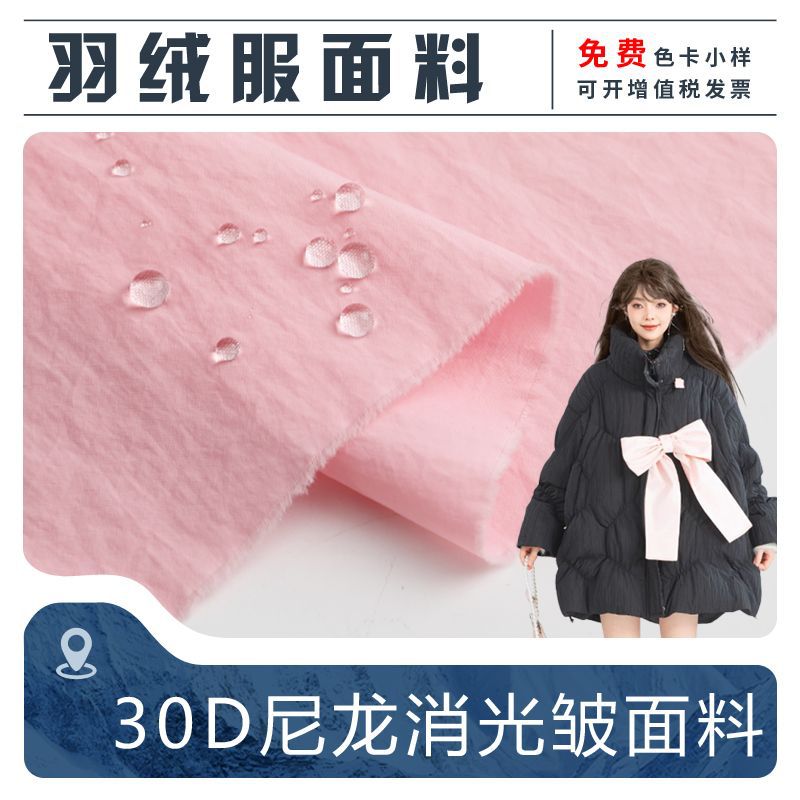 羽绒服面料 30D尼龙消光皱肌理感防泼水面包服泡芙服羽绒马甲布料