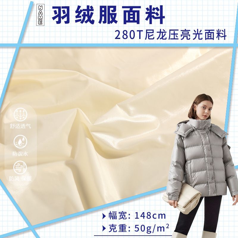 ダウンジャケット生地50Dミルクサテン超高密度600T无胆防パイル防水シュークリーム服コットン服生地