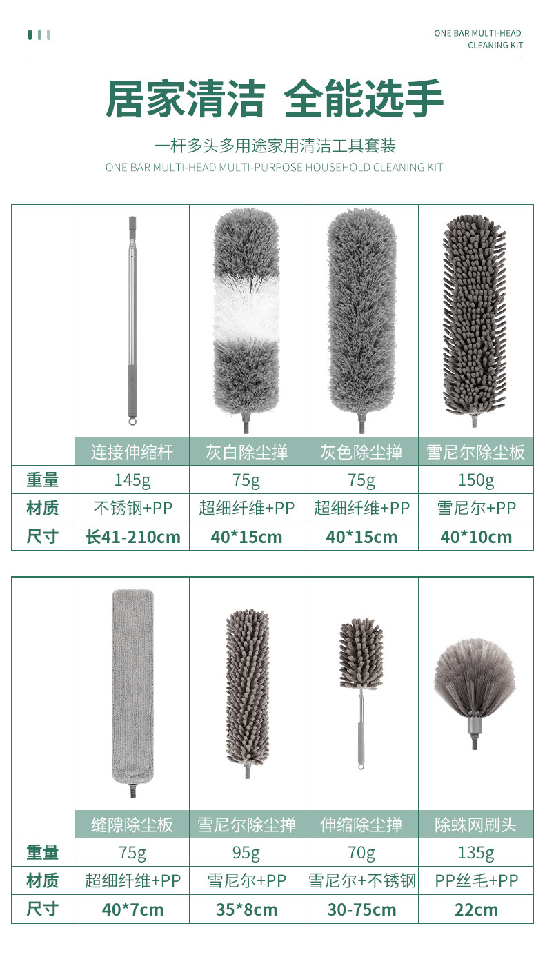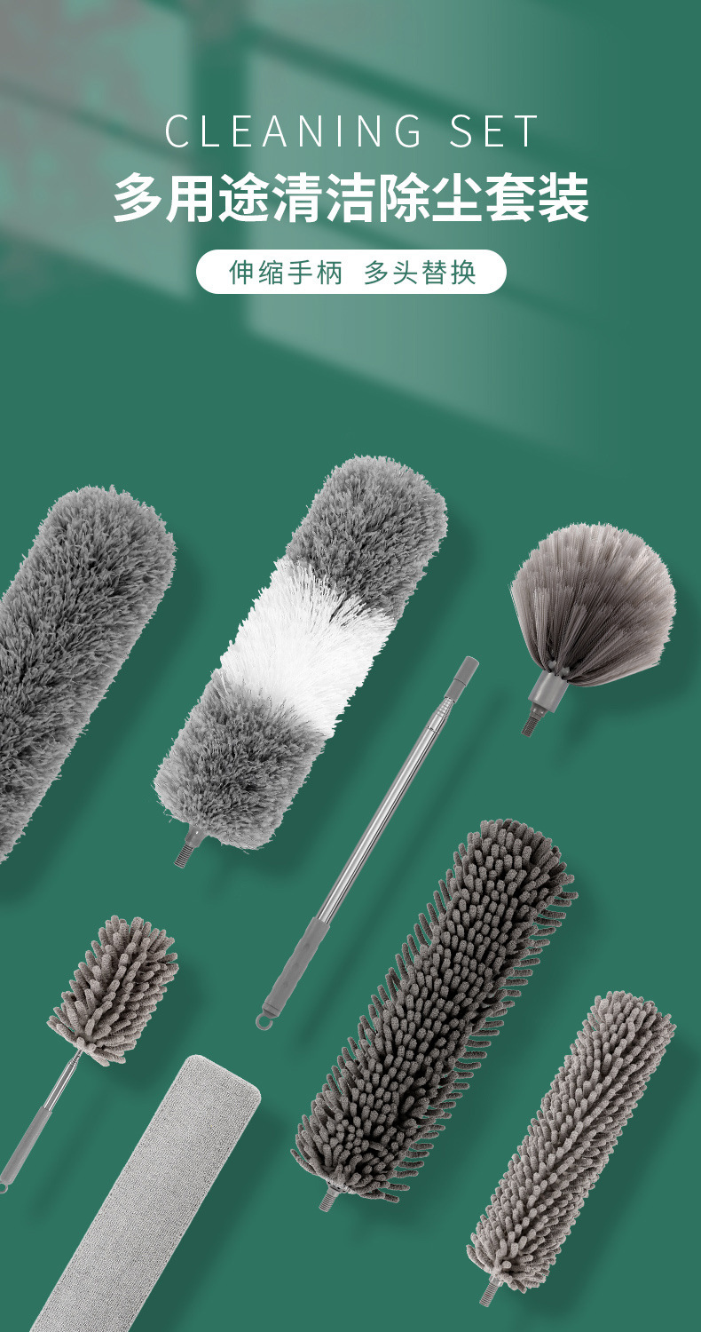 跨境组合扫灰纤维鸡毛掸子可弯曲静电掸子雪尼尔除尘掸缝隙除尘刷