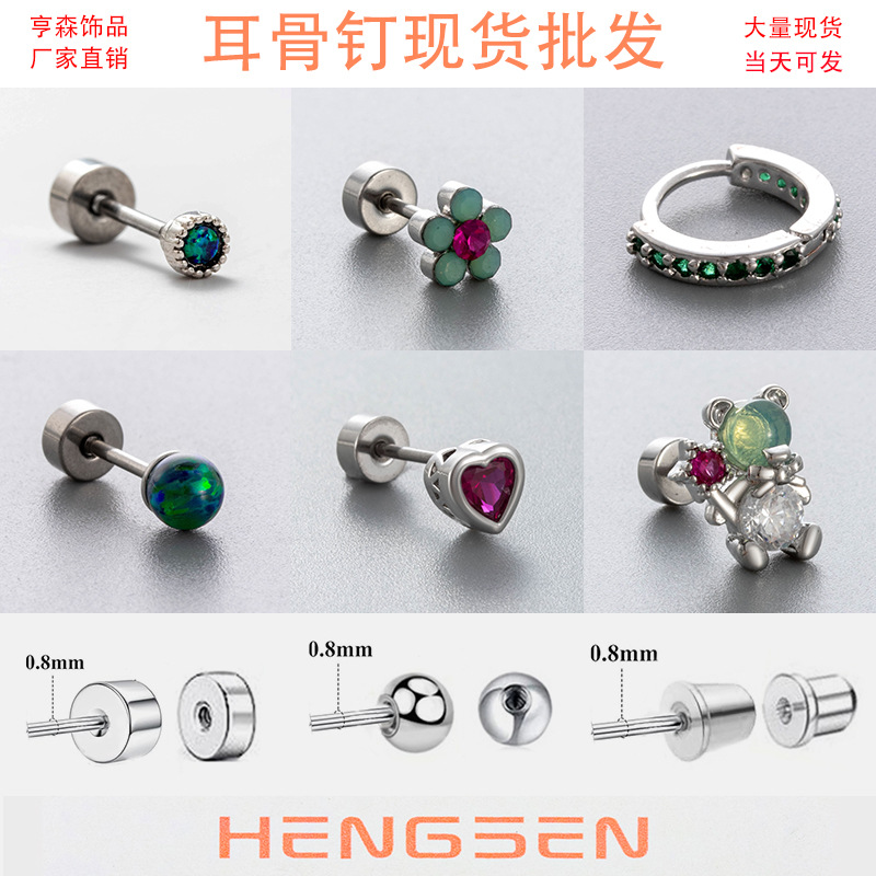 亨森震え音小紅書新八心八矢ジルコン雪花チタン鋼双頭は耳の耳の骨釘を取り外すことができる