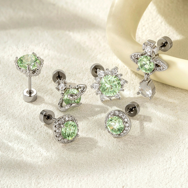 速売通アクセサリーシンプルな3爪ジルコンピアスステンレスネジ耳骨釘対外貿易耳穿刺卸売り