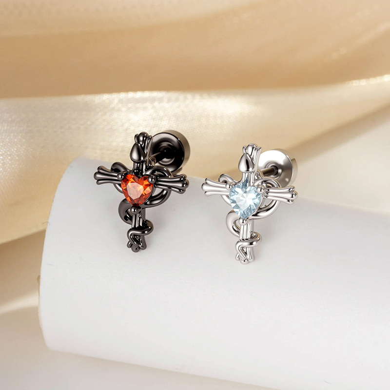 亨森創意十字架愛カップルモデルチタン鋼ネジ耳骨釘耳ウォームピアス高級感小衆耳飾り