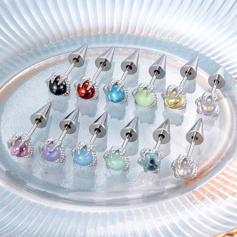 亨森新款多巴胺色系5mm龙爪小众设计款甜酷辣妹情侣款穿刺耳饰