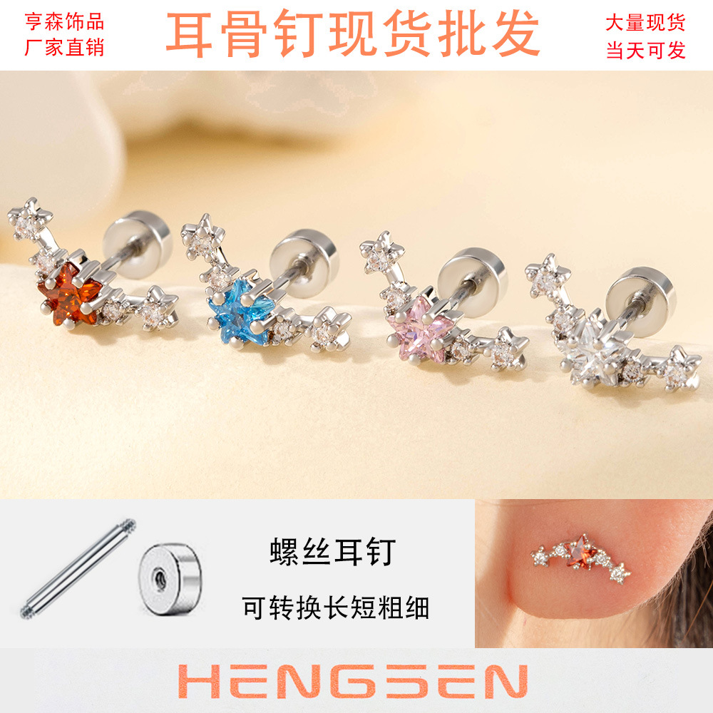 亨森五角星ジルコンピアスアーチ形チタン鋼ネジネジネジ耳骨釘小衆高級感少女耳飾り