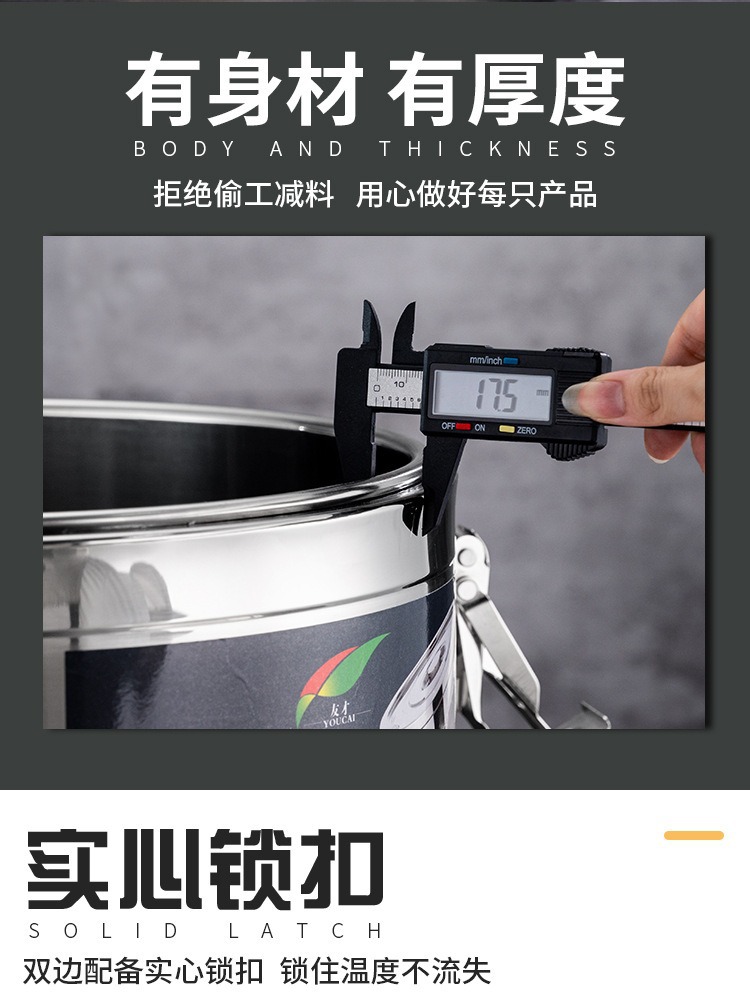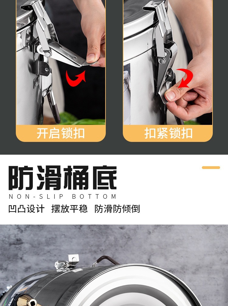 純鋼304ステンレス鋼製断熱バケツ、業務用二重層ミルクティーバケツ、食堂屋台用断熱米バケツ、スープバケツ、豆乳バケツ