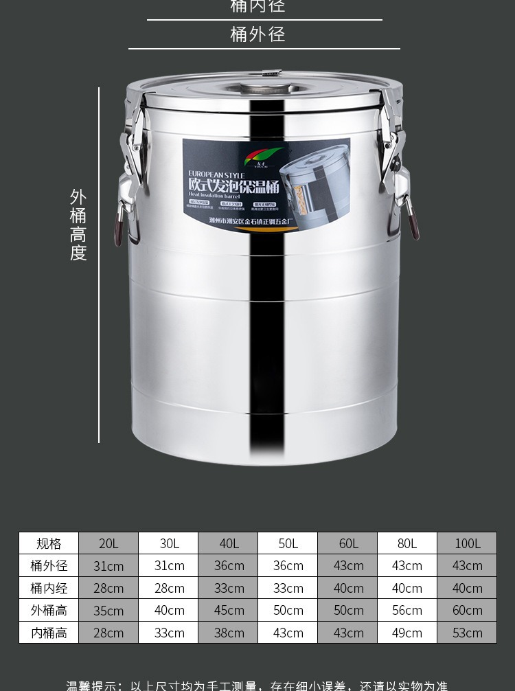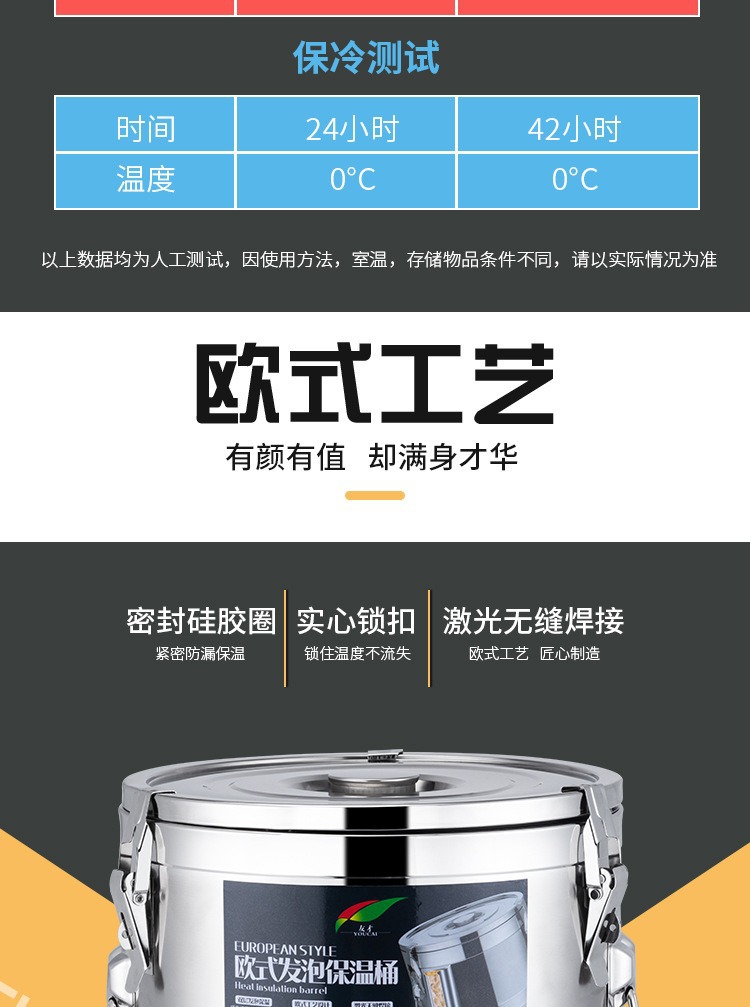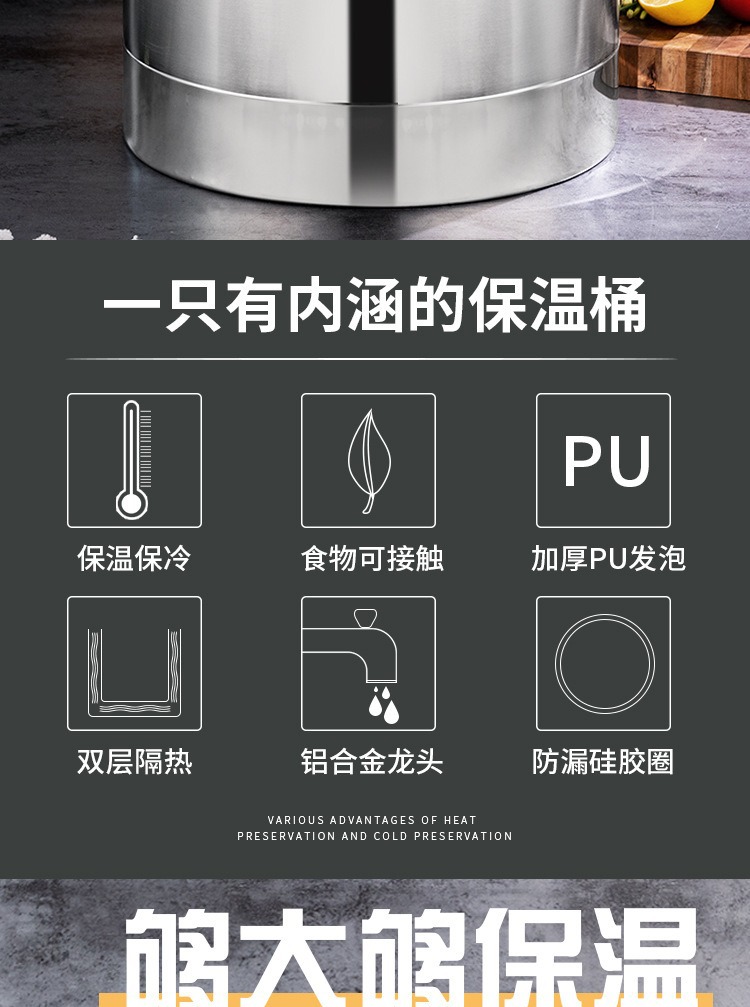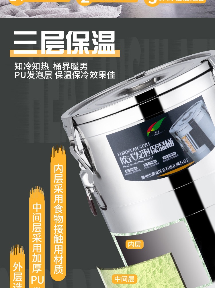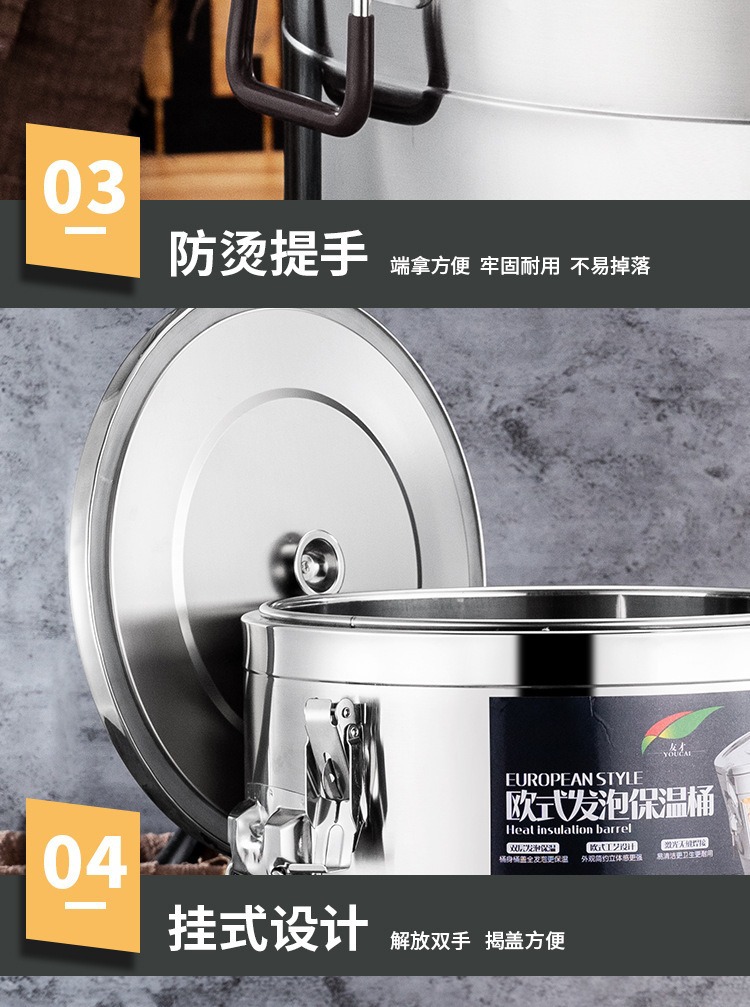 商用露店大容量ステンレスヨーロッパ式保温桶三層発泡長長保温ホテル密封湯桶