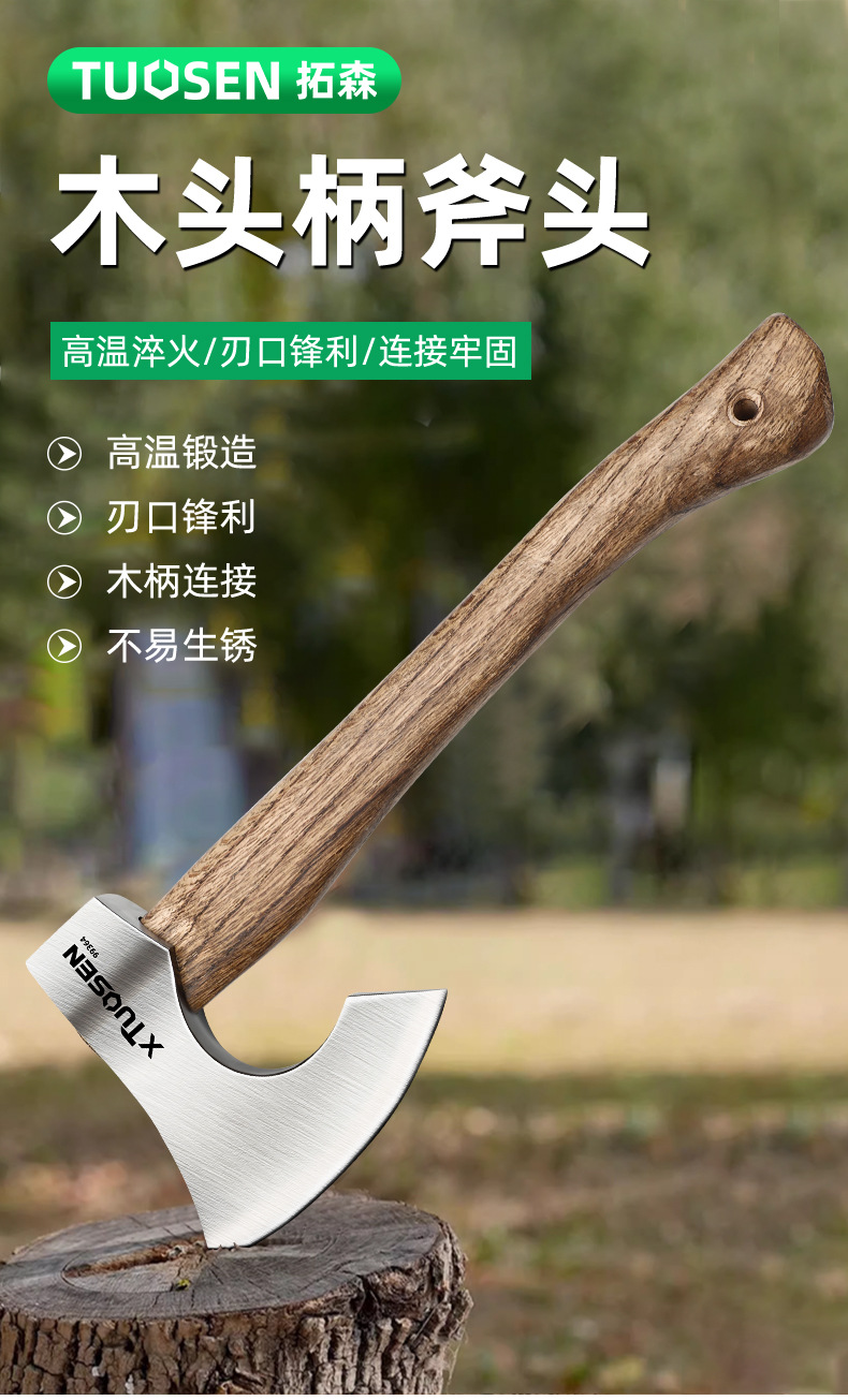 拓森木柄斧家庭用骨切り斧屋外キャンプ木切り木切り手斧道具薪切り木工斧