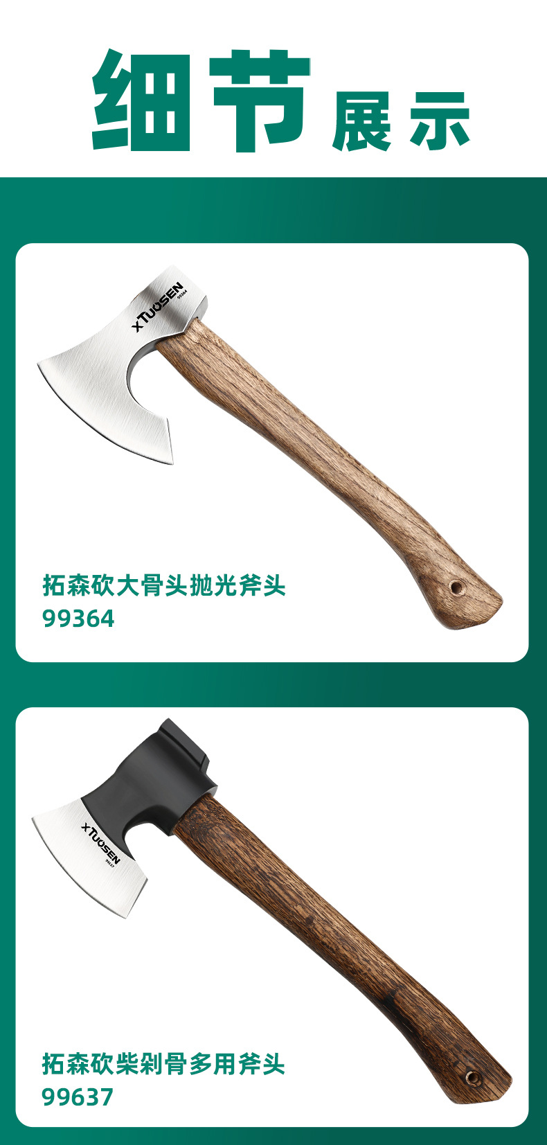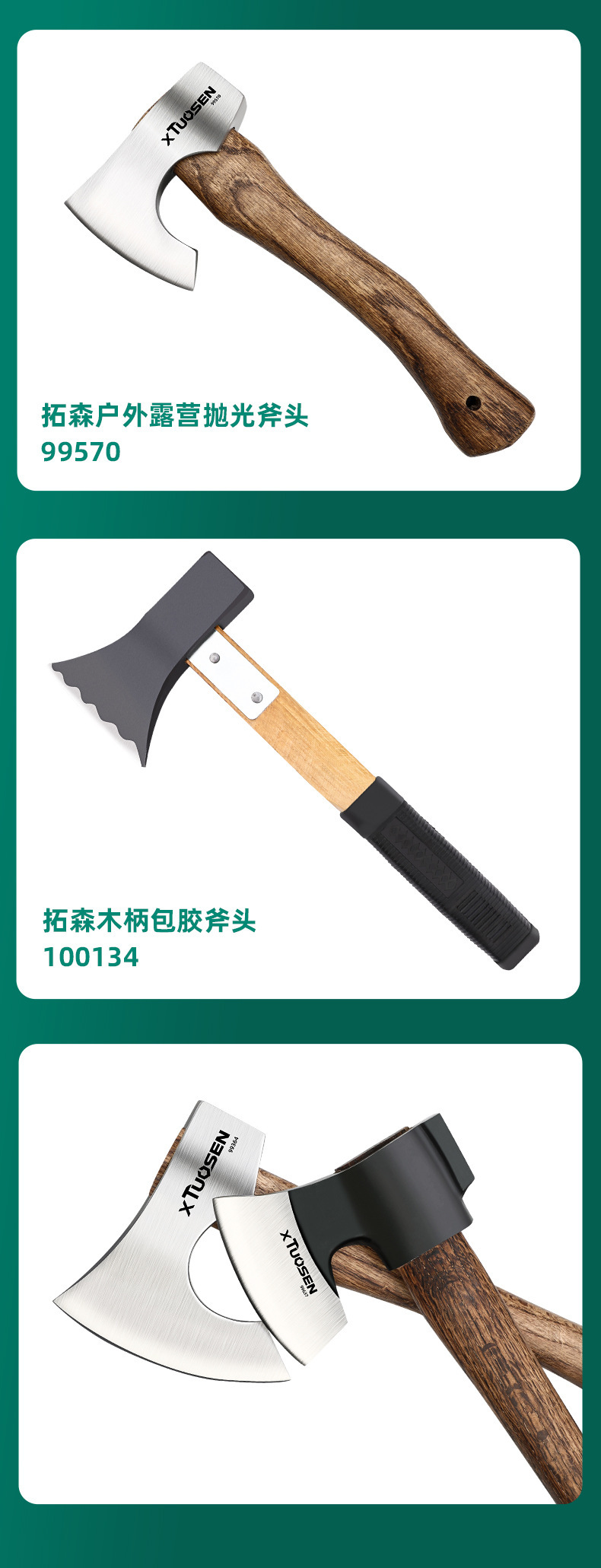 型番 99570、拓森屋外キャンプ研磨斧、2/箱40/件、435 kg,99364、拓森は大きな骨を切って斧を磨き、24/件、0.66 kg,99637、拓森は柴を切って骨を切って斧を多く使うことができて、24/件、02kg,100134、木柄斧、40/件、95KG