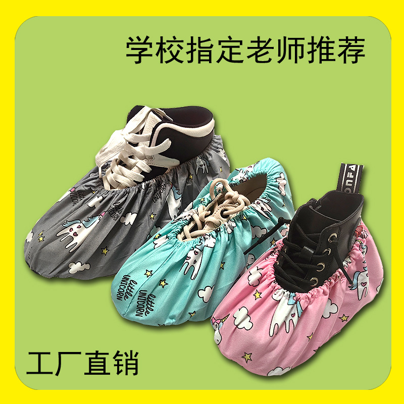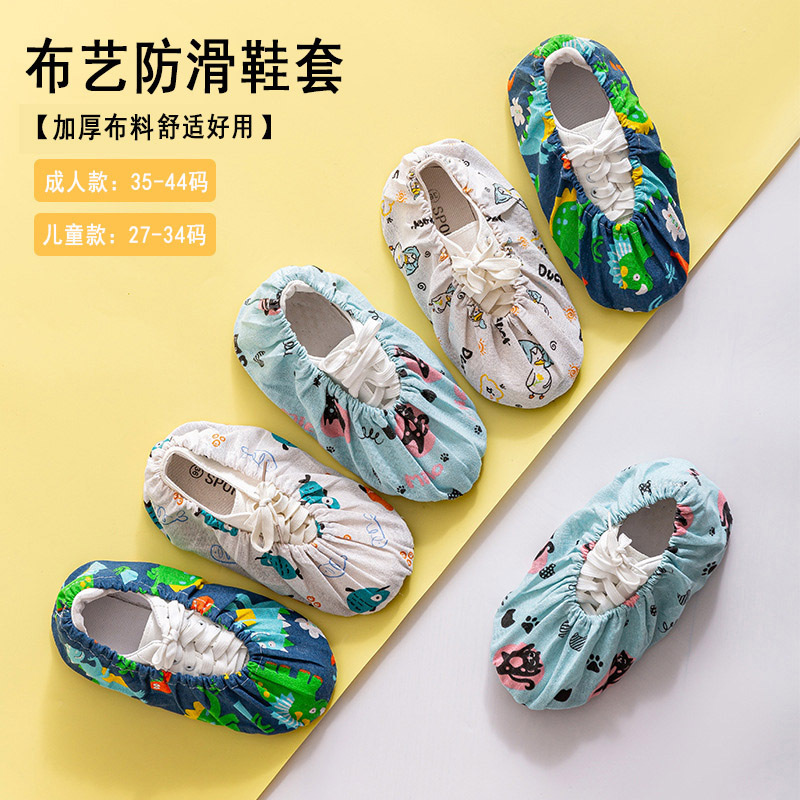 靴カバー家庭用洗浄可能キャンバスプリント布靴カバー子供漫画滑り止め底学生機械室布足カバー
