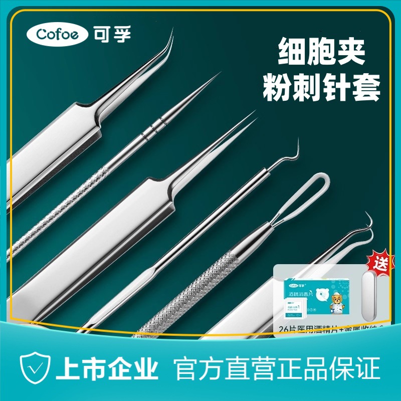 可孚细胞夹黑头超细神器型粉刺针套装挤痘痘工具美容院镊子黑头夹