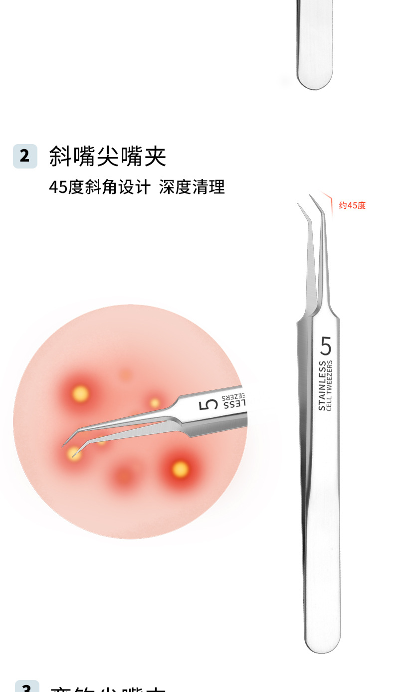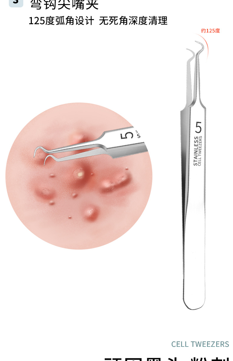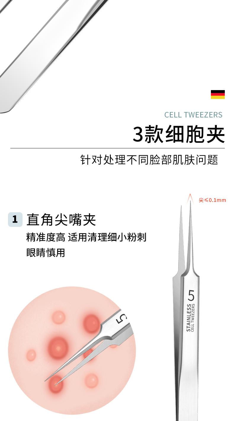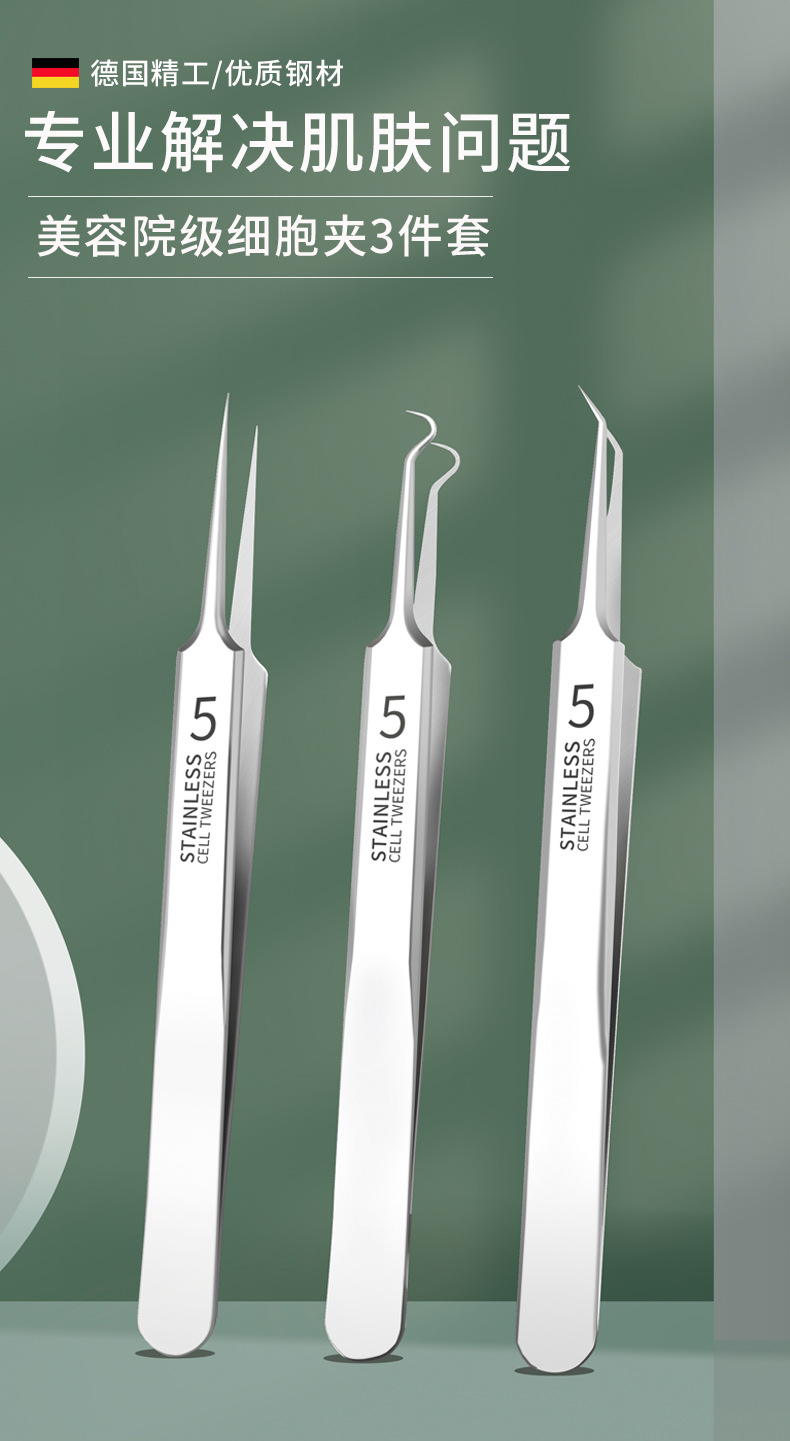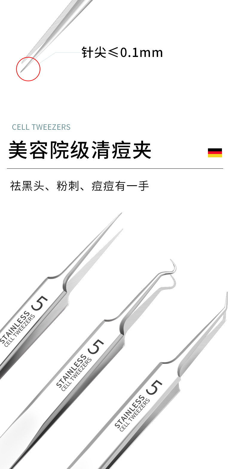 细胞夹医用级去黑头夹镊子夹粉刺夹闭口暗疮粉刺针4件套装超尖细