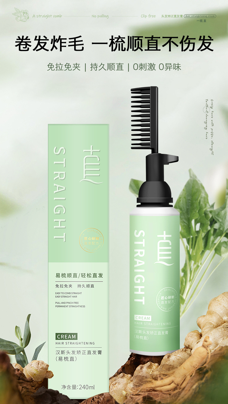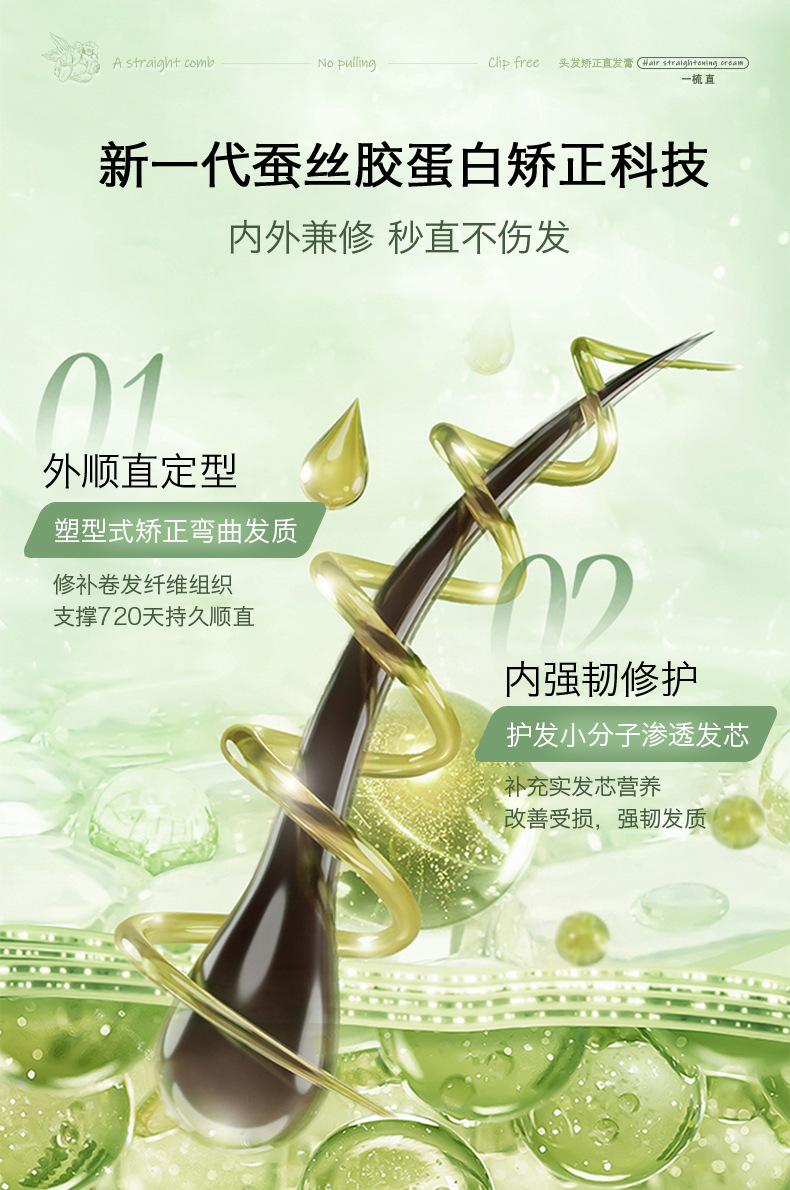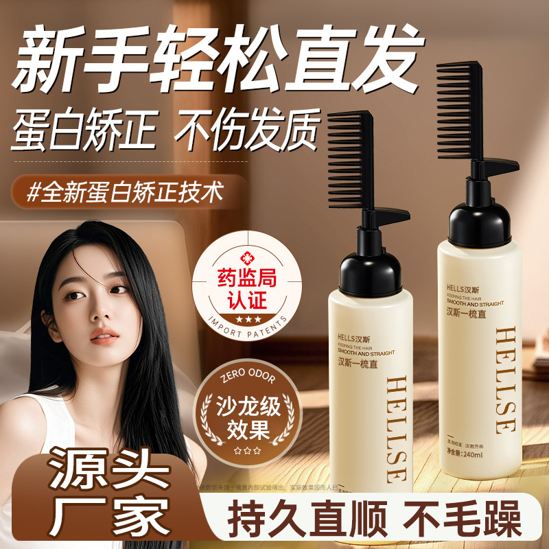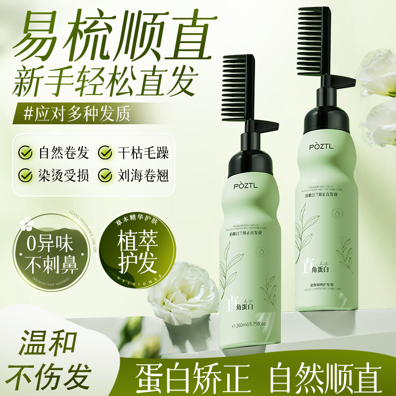直发膏蛋白矫正免拉家用软化剂头发柔顺剂修复毛躁定型拉直一梳直