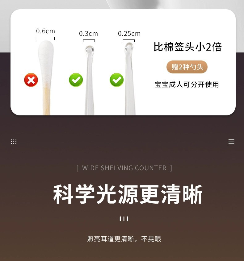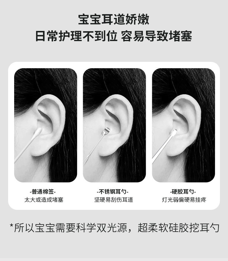 发光耳勺套装儿童宝宝掏耳朵扒采耳工具usb充电带灯掏耳勺挖耳勺