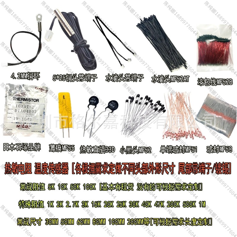 NTC玻封热敏热敏MF58 5K/10K/15K/20K/47K/50K/100K/200K/500K 1%