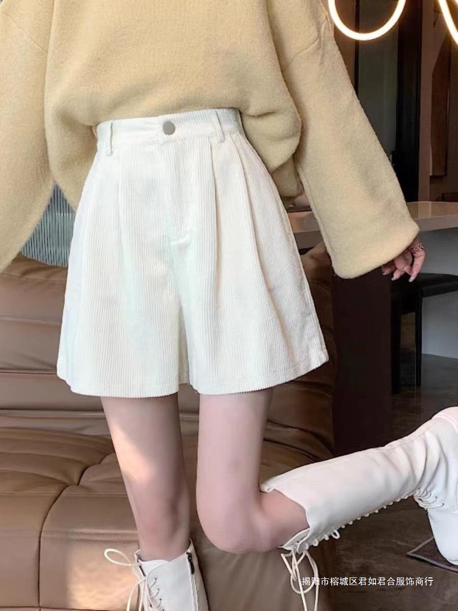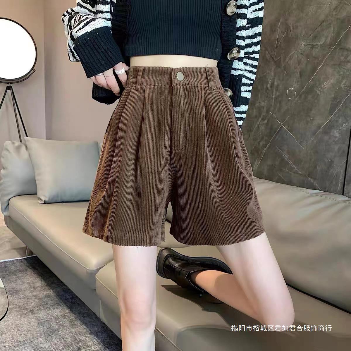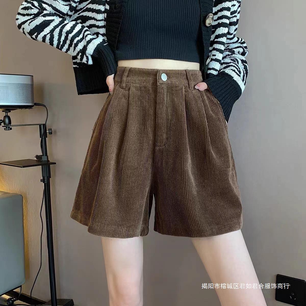 コーデュロイa字ショートパンツ女性2023年秋冬新作ゆるい着痩せワイドパンツとブーツのカジュアルパンツ