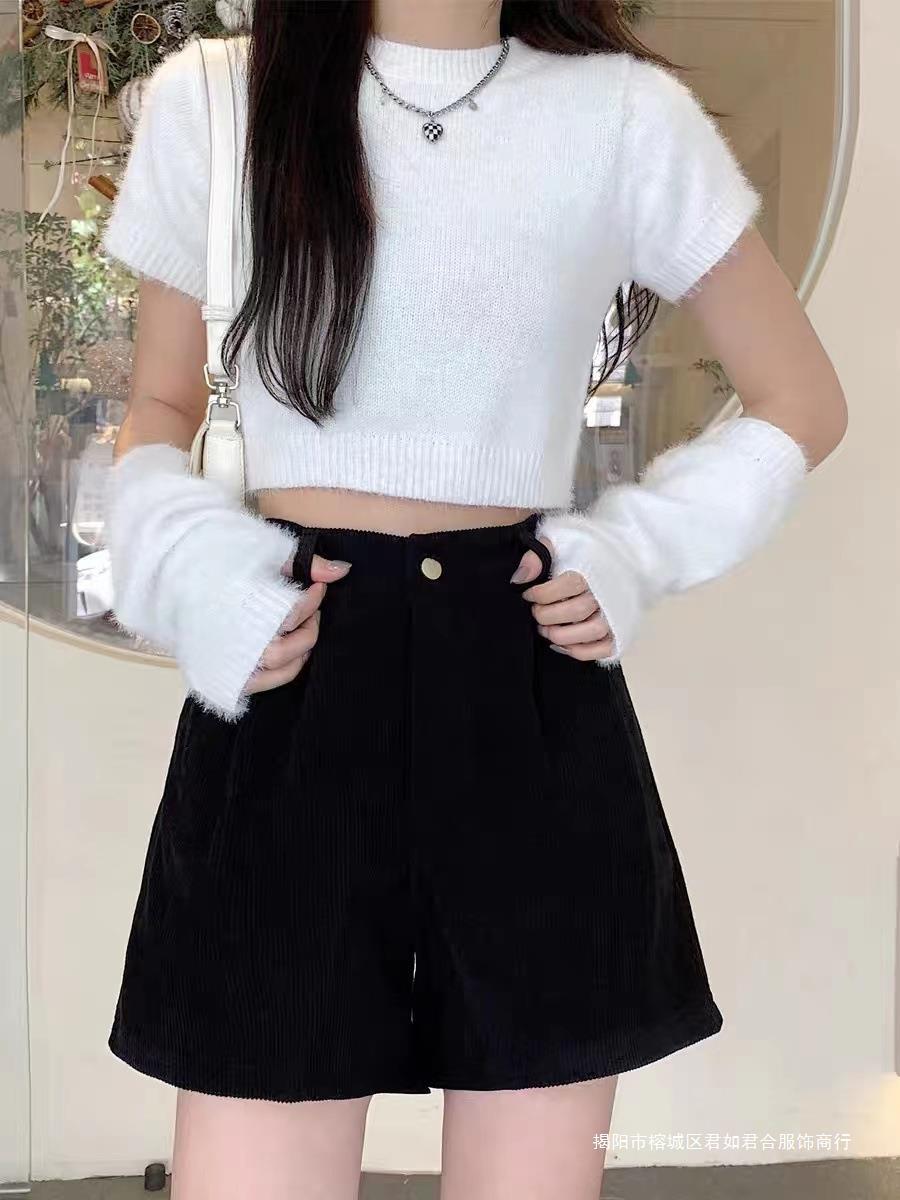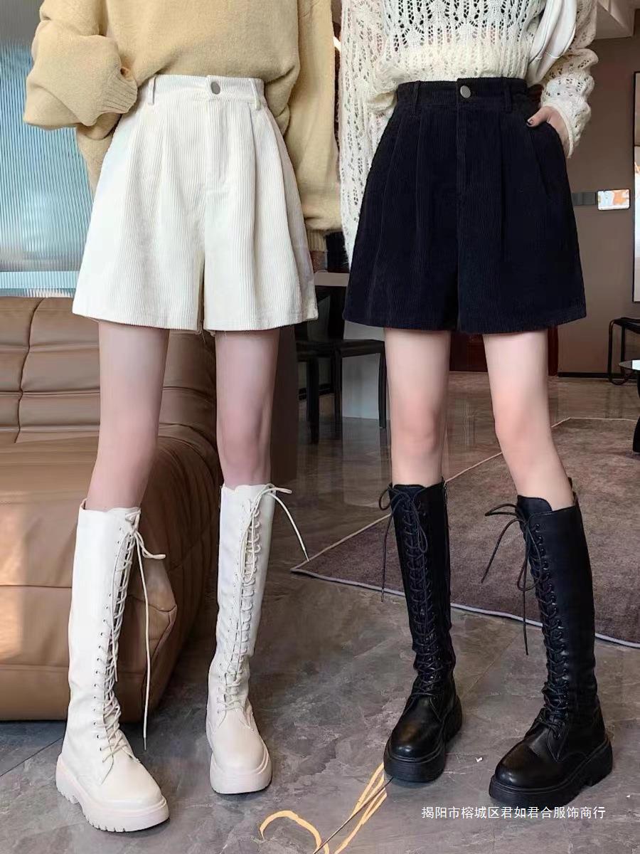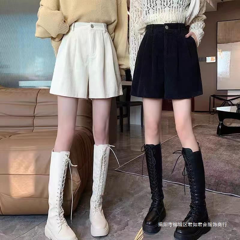 コーデュロイa字ショートパンツ女性2023年秋冬新作ゆるい着痩せワイドパンツとブーツのカジュアルパンツ