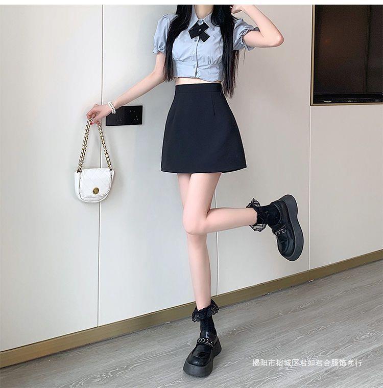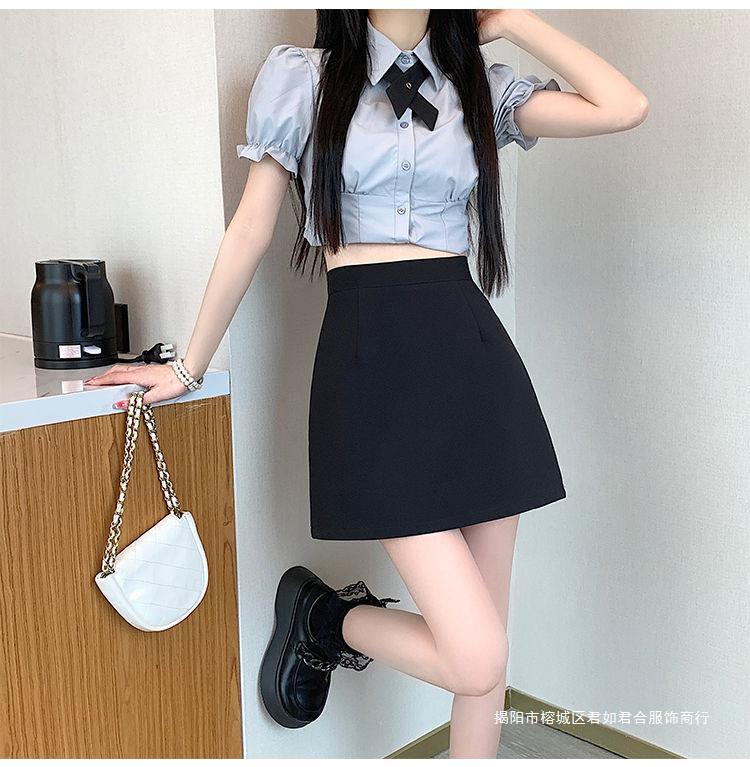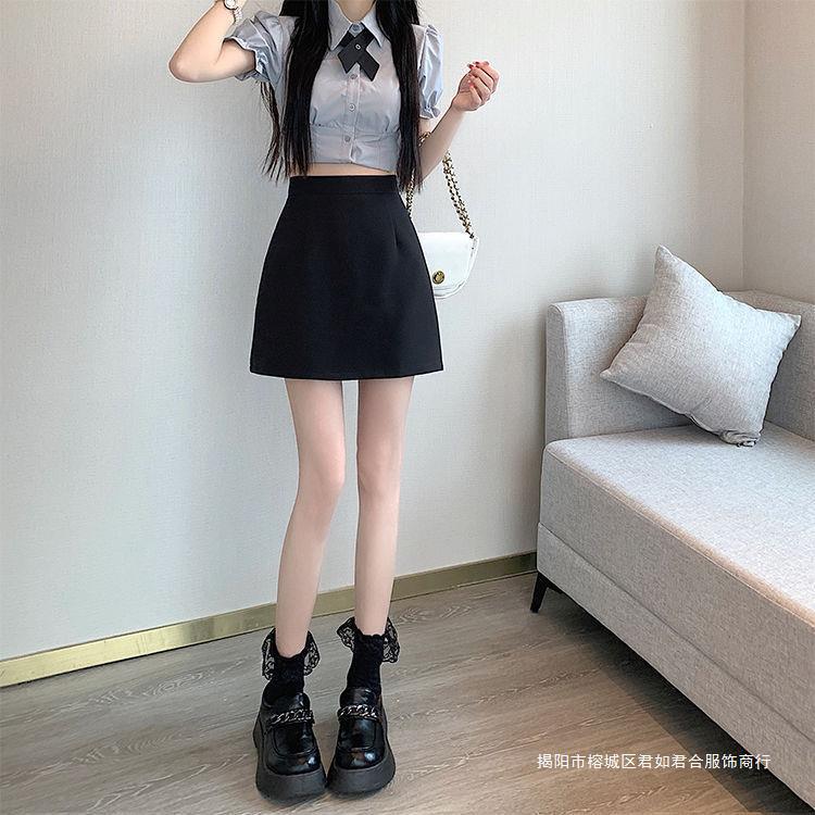 スーツグレースカートレディース2025年夏新作ヒップカバーショートスカートブラックハイウエストショートスカート