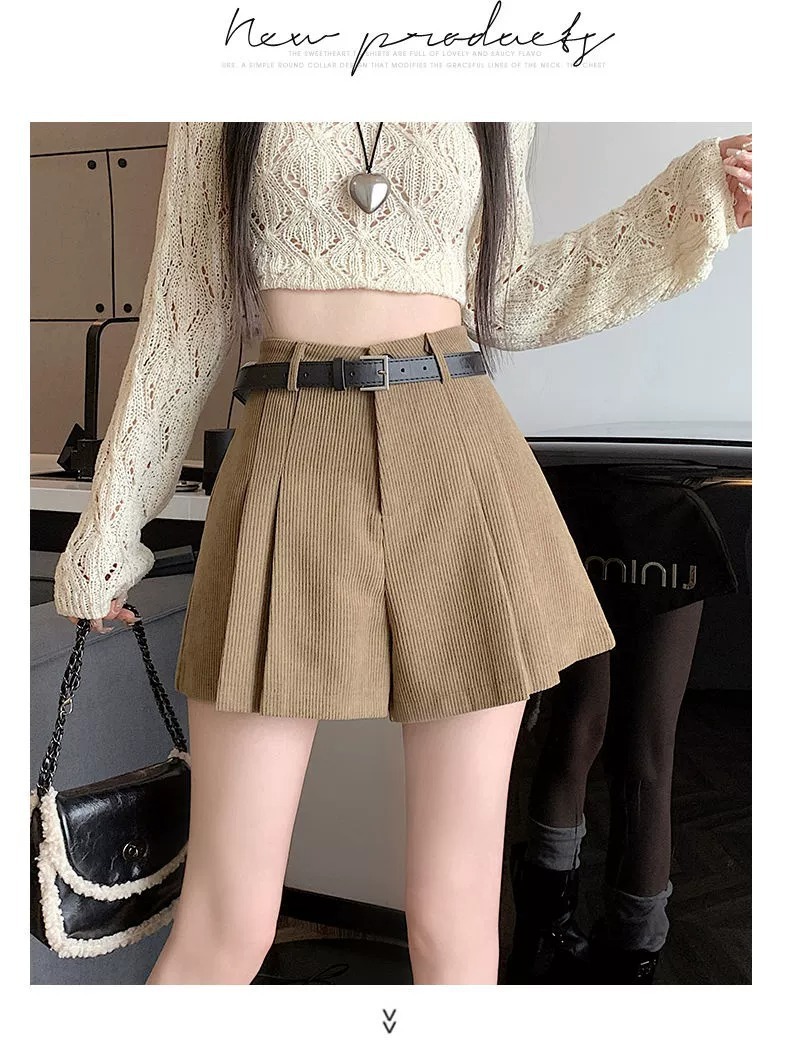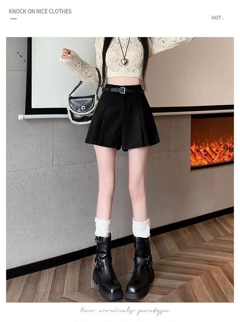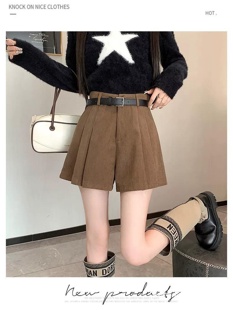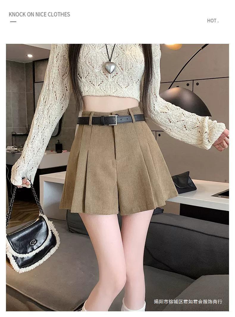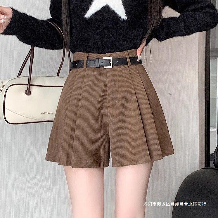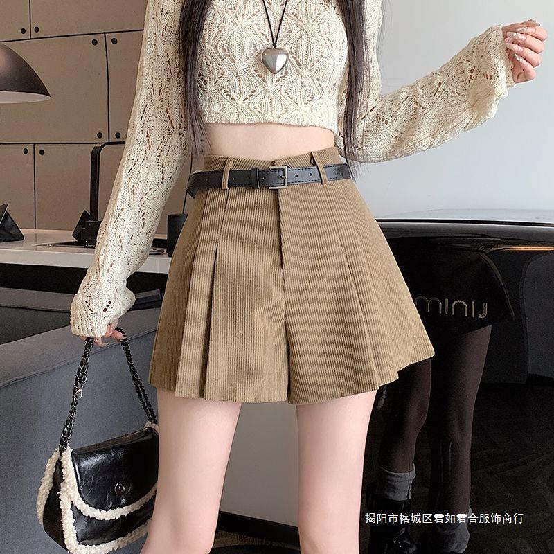 ハイウエストのコーデュロイのショートパンツの女性の秋の2024の新型はやせています。