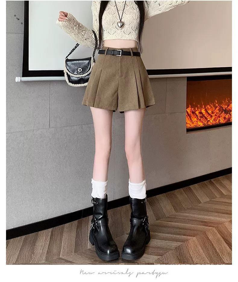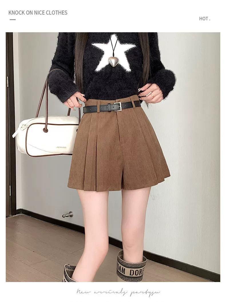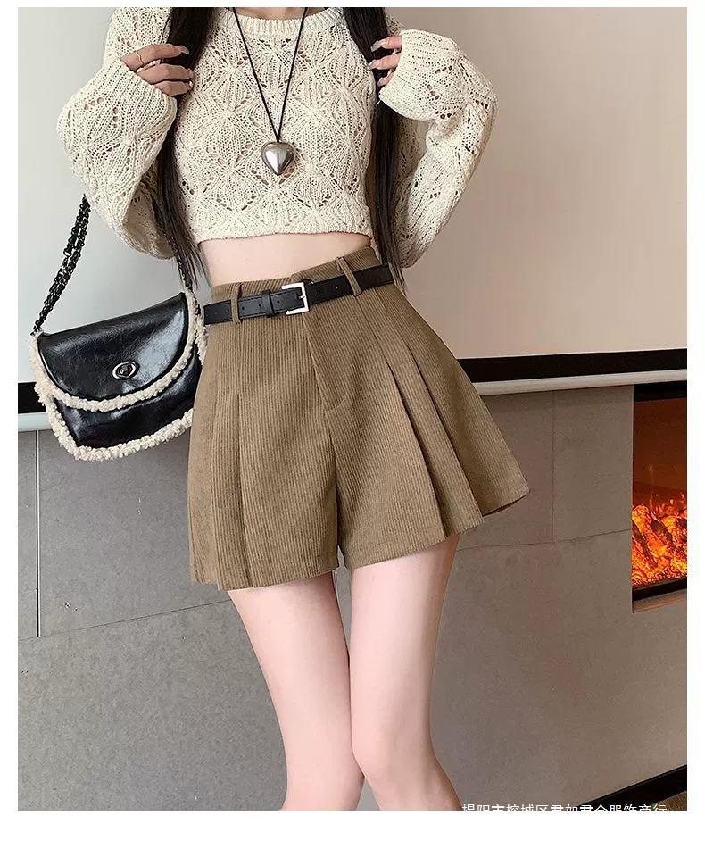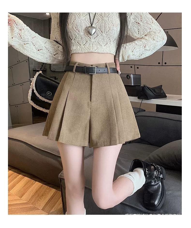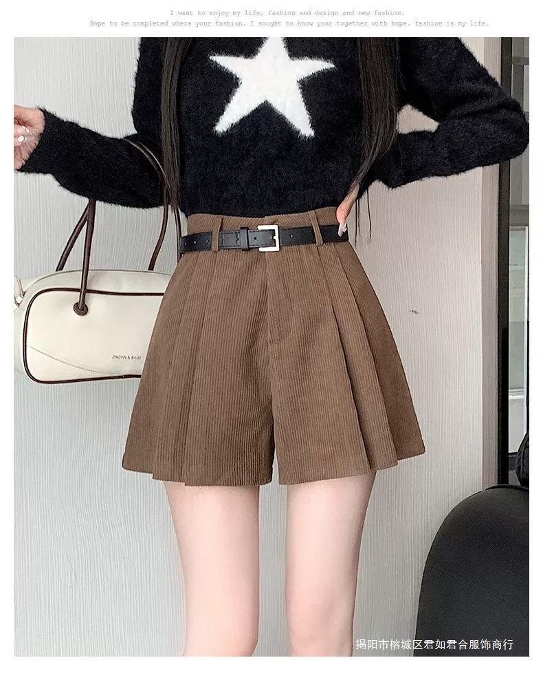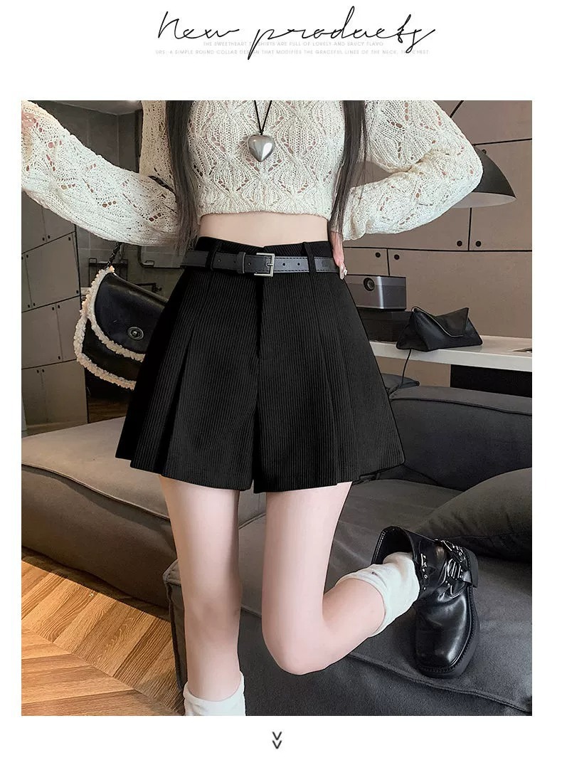 ハイウエストのコーデュロイのショートパンツの女性の秋の2024の新型はやせています。