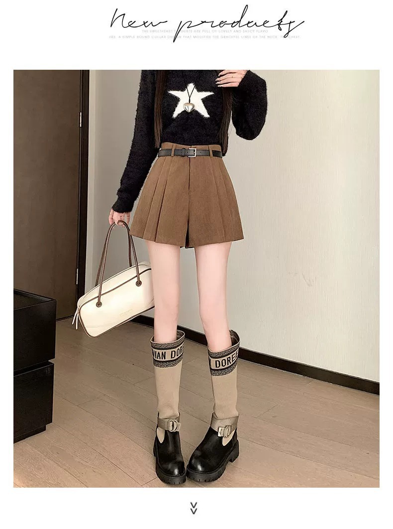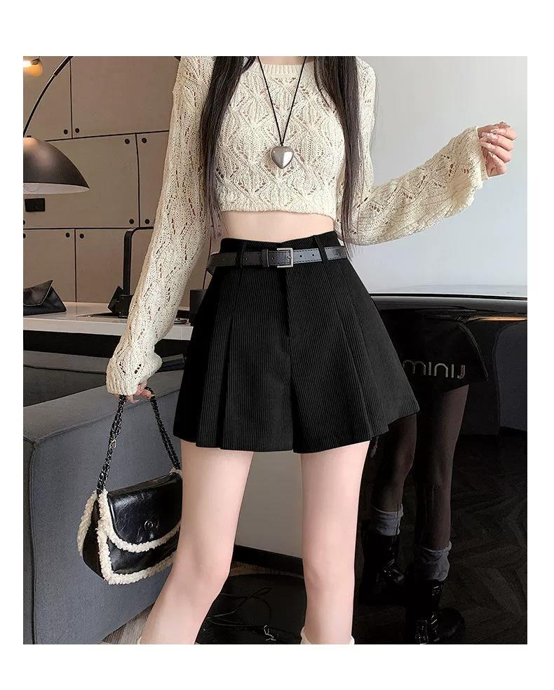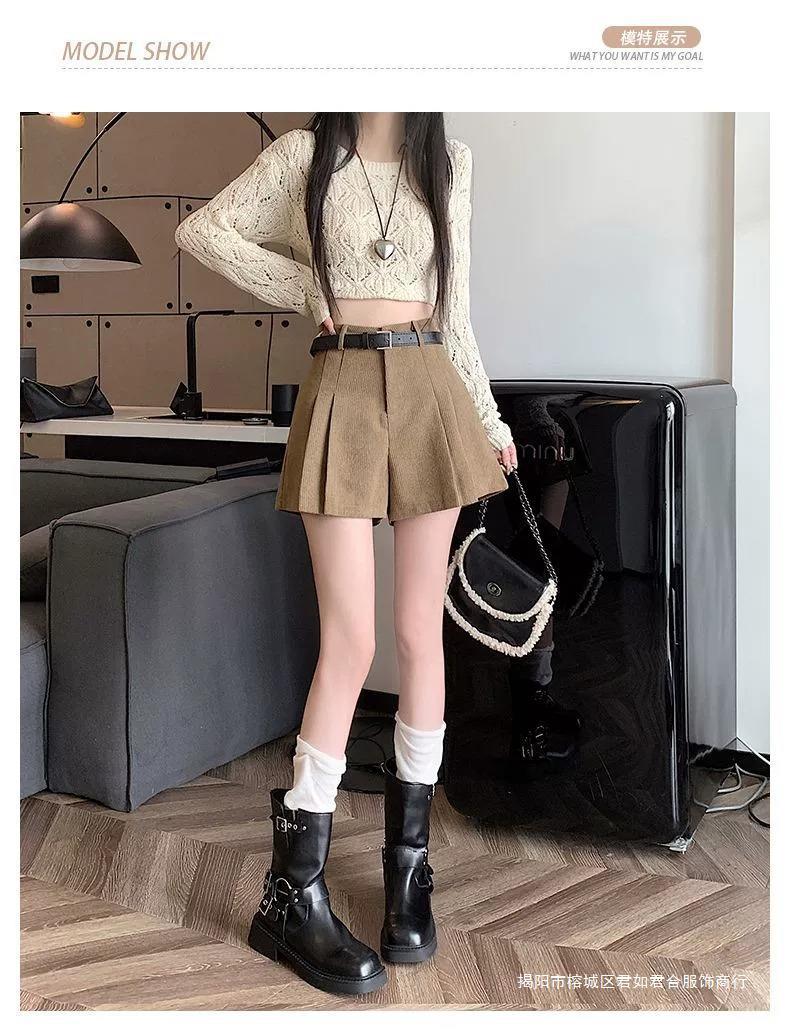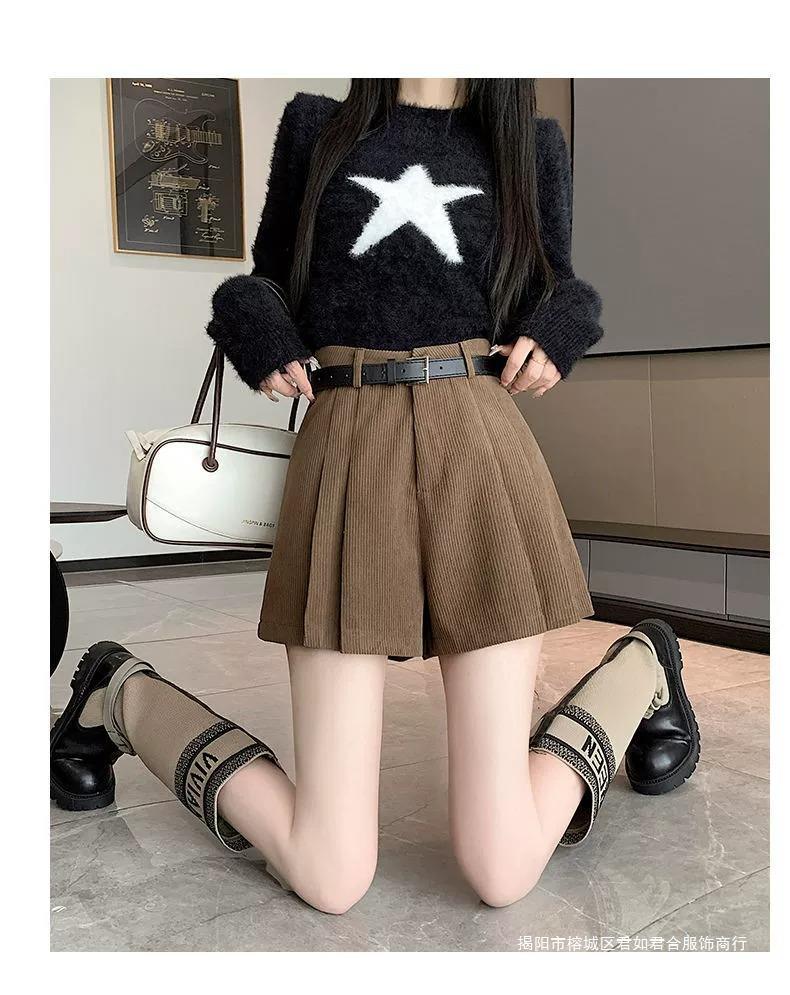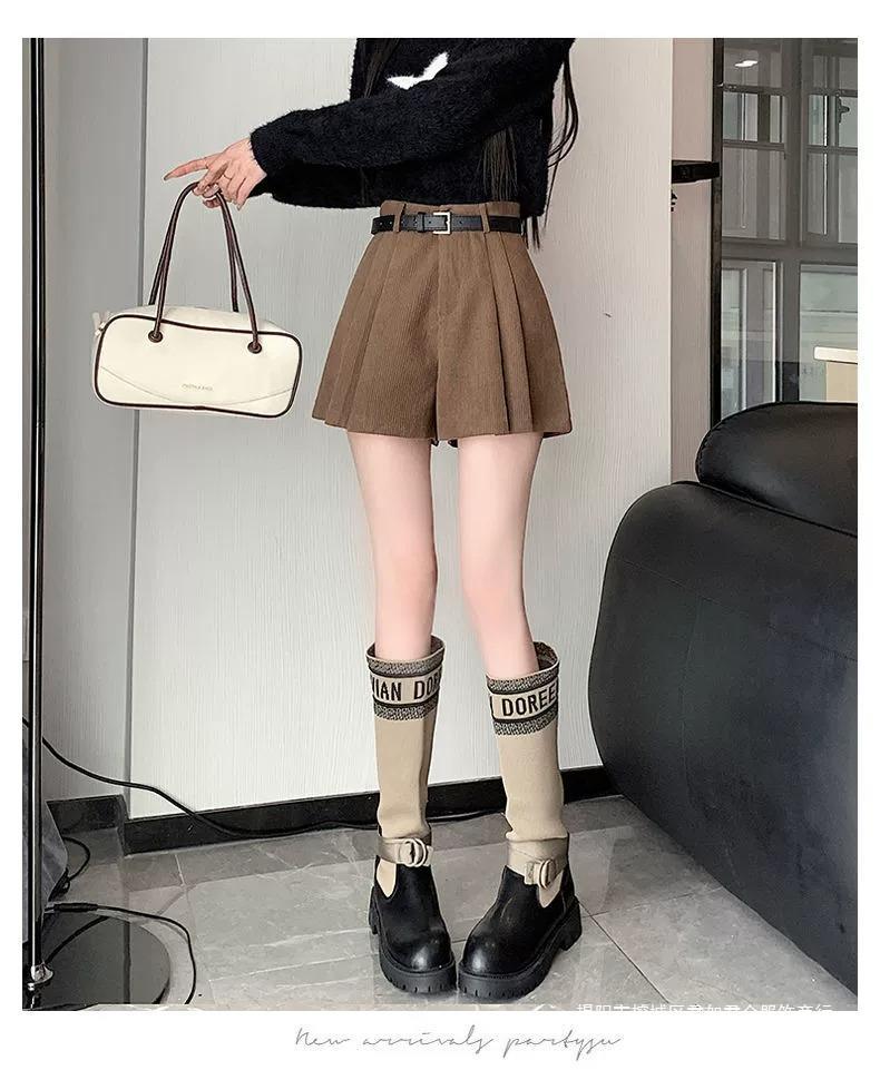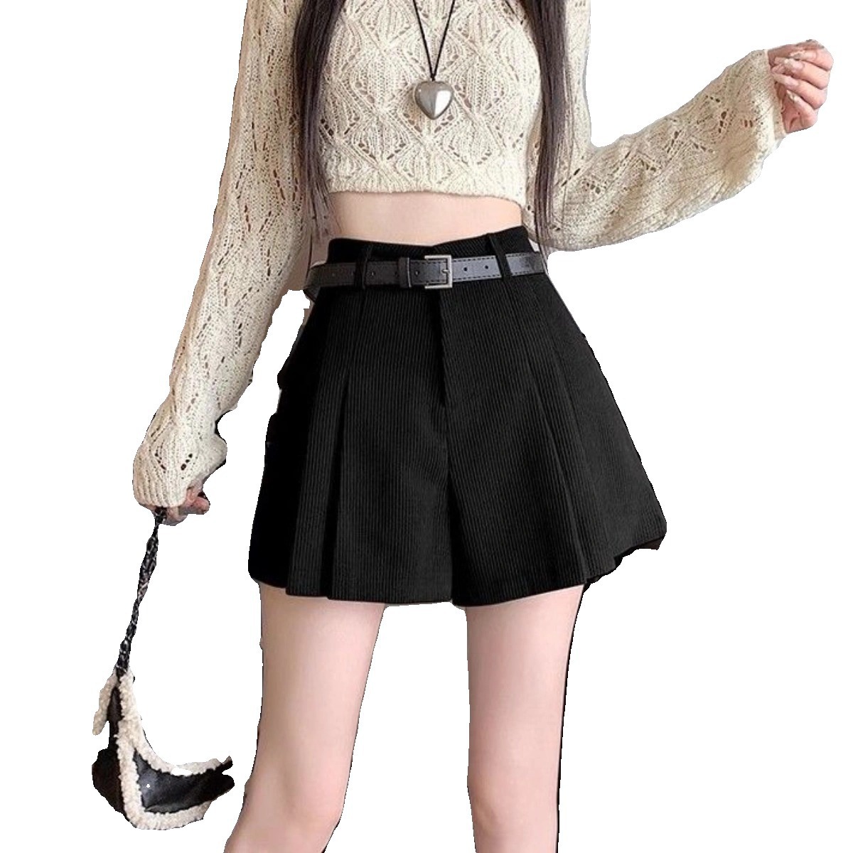 ハイウエストのコーデュロイのショートパンツの女性の秋の2024の新型はやせています。