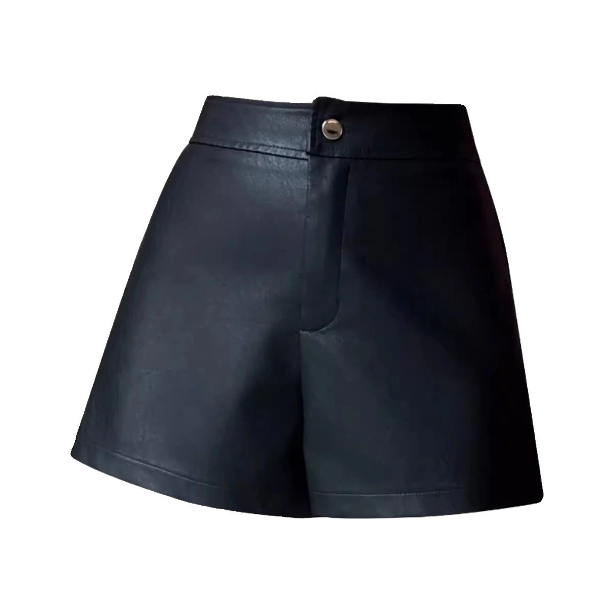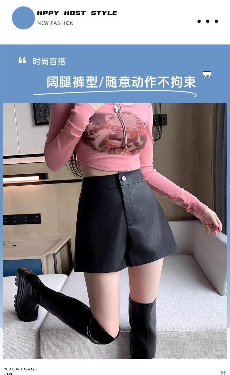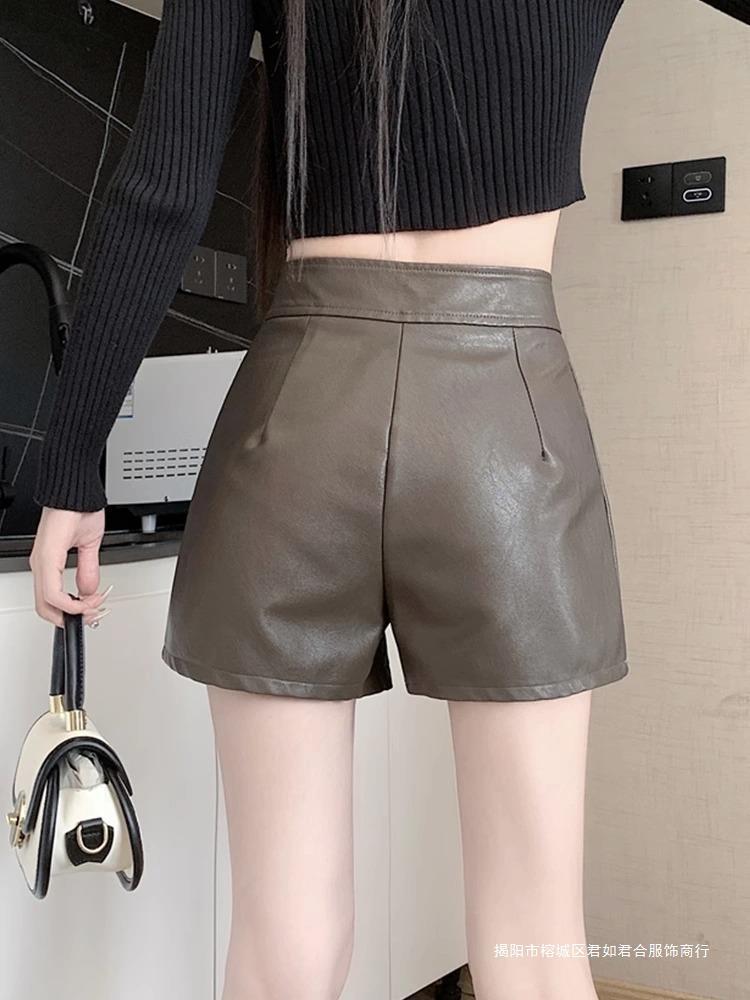 革のズボンのショートパンツの女性のギャルの2023秋冬の新しい包みのヒップのズボンはやせています。