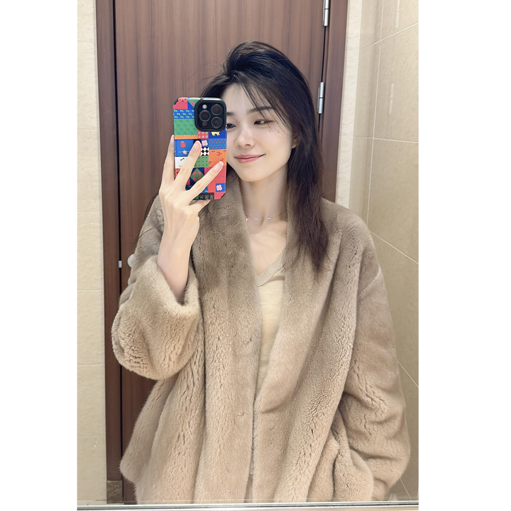 2025年新作輸入ベルベット総毛皮ヤマトネコ毛皮ショートコート レディース Vネック ミンクファーコート 女性用冬物