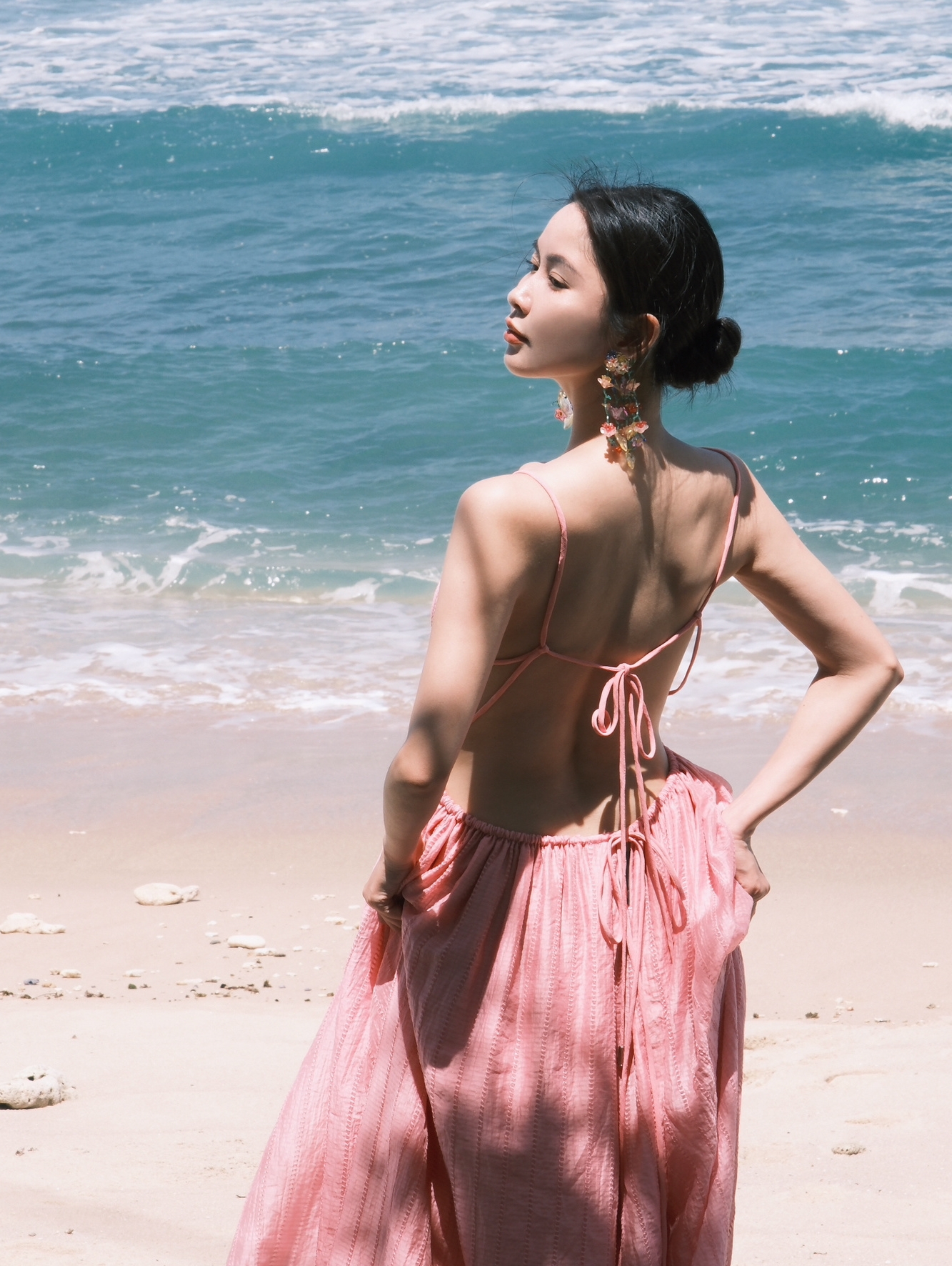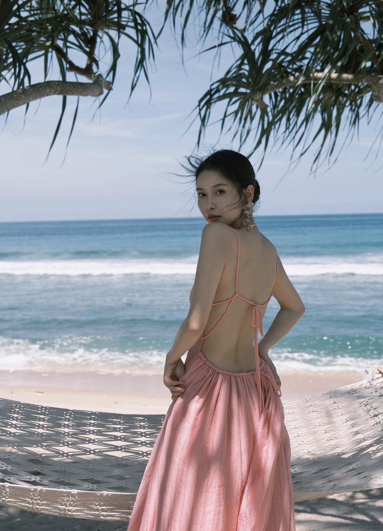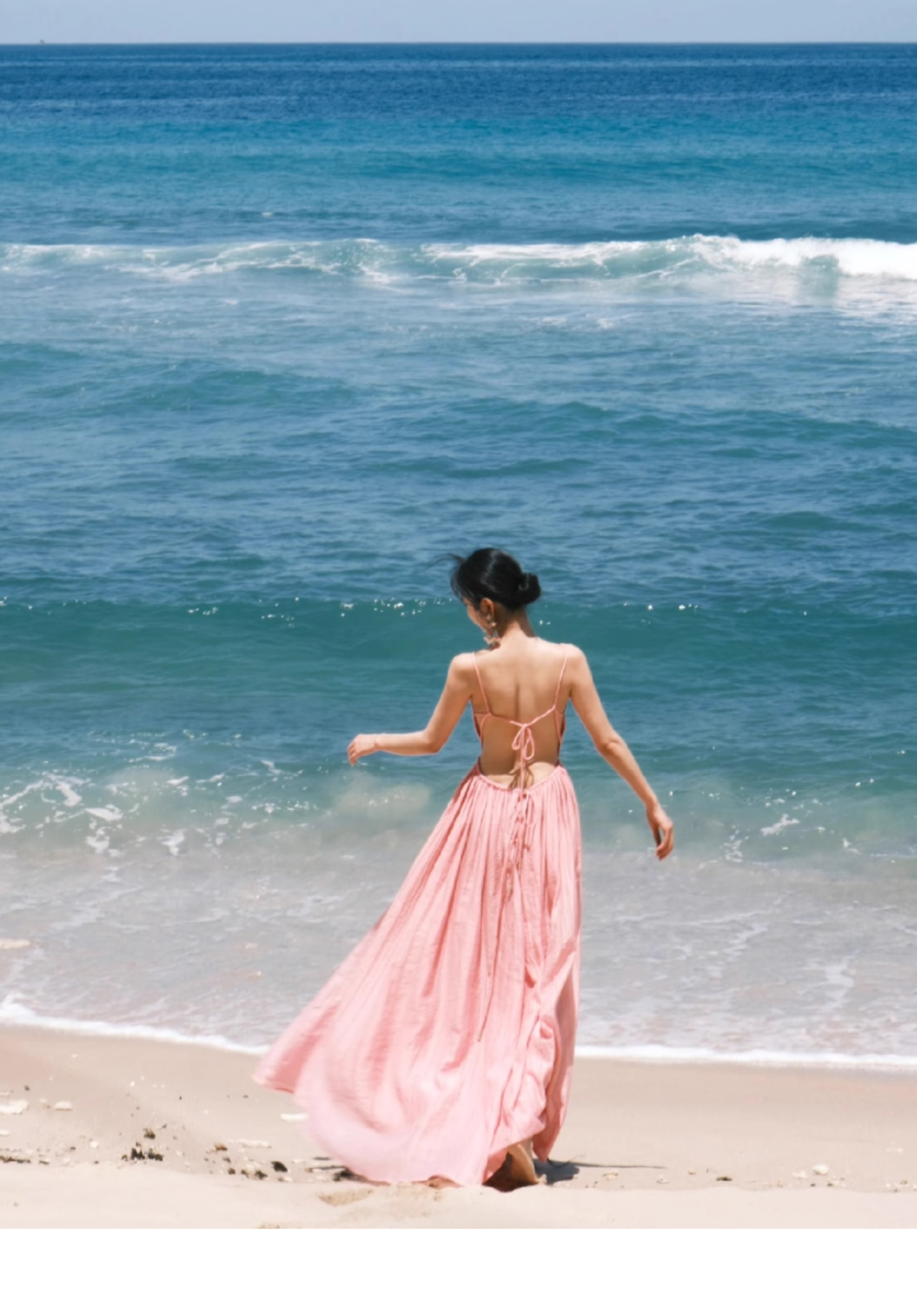 フランス三亜海辺休暇露背ビーチスカート雲南タイ旅行写真超仙首ストラップワンピース