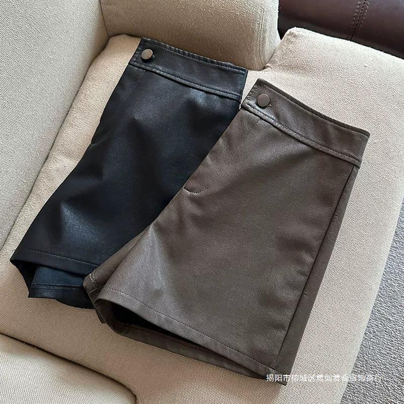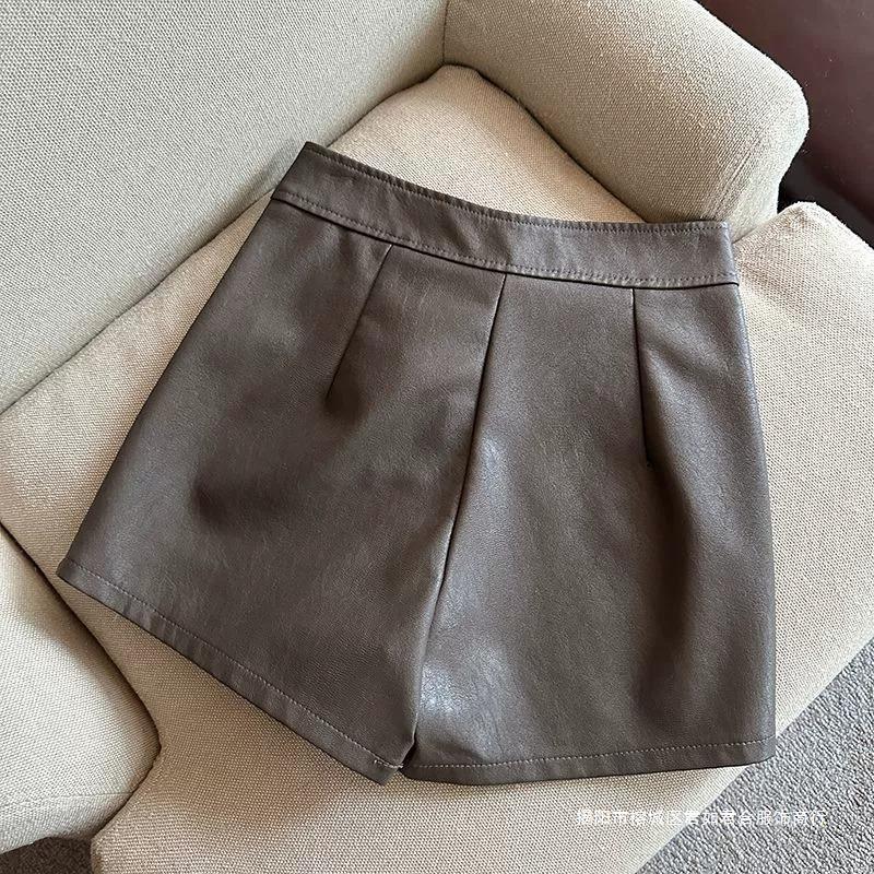 新作ショートパンツ レディース 秋冬人気 PUレザー ハイウエスト レザーパンツ スリム Aライン カジュアル レザーパンツ ワイドレッグ ブーツパンツ