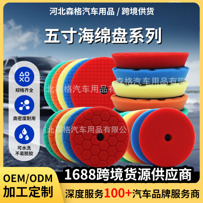 跨境5寸海绵盘汽车美容抛光打蜡盘漆面划痕修复研磨抛光轮海绵