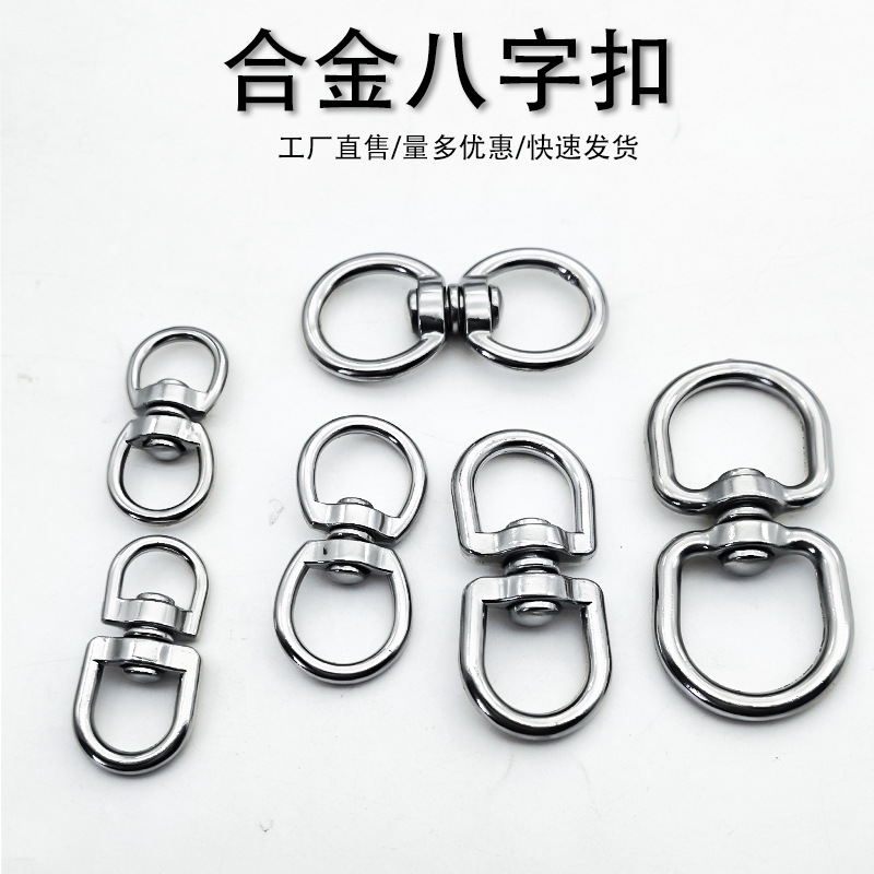 メーカー卸売金属八字バックル特大八字バックル亜鉛合金8字バックルユニバーサルリング犬チェーン双方向回転リング